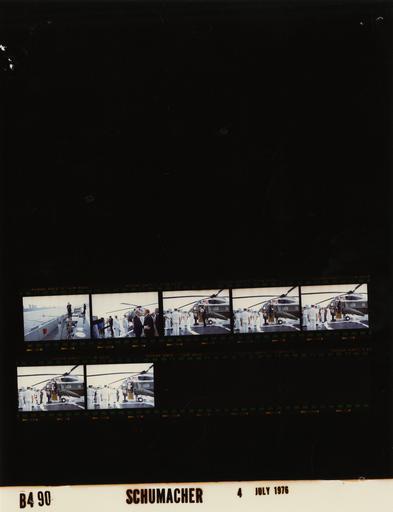 Keywords: Ford B0490 NLGRF photo contact sheet (1976-07-04)(Gerald Ford Library).jpg White House Photographic Office WHPO is housed at the Gerald R Ford Presidential Library a branch of the National Archives and Records Administration NARA <br/><br/> This file is a 200 dpi photo contact sheet having images from roll of film B0490 of the August 9 1974 - January 20 1977 Gerald R Ford White House Photographic Office Series A0001-A9999 and B0001-B2886 photographs <br/><br/> The date on the photo contact sheet is the date the roll of film was processed not necessarily the date the photographs were taken See table below for additional details 1976-07-04 Gerald R Ford Presidential Library Image http //www fordlibrarymuseum gov/library/whphotos/B0490_NLGRF jpg B0490_NLGRF jpg from http //www fordlibrarymuseum gov/library/whphotos/19760704whpo pdf White House Photographs July 4 1976 of the http //www fordlibrarymuseum gov/Library/whphotos/whpo asp White House Photographic Collection page White House Photographic Office WHPO - Schumacher PD-USGov Institution Institution Gerald R Ford Presidential Library Table wikitable sortable + Photo contact sheet B0490 U S President Ford Administration Gerald R Ford Library Frame s Tone Subject proper Subject generic Names Geographic Location Photographer Date - 4 Color 4th of July Bicentennial Event - Flight Deck of the USS Nashville LPD-13 -Operation Sail standing watching ships not seen sail by; arms folded GRF New York Harbor New York City NY USS Nashville LPD-13 - Flight Deck Schumacher 1976-07-04 - 5 Color 4th of July Bicentennial Event - Flight Deck of the USS Nashville LPD-13 -Following Operation Sail - Prior to Departure for Newark International Airport handshaking saying goodbye; Marine One Helicopter in background GRF Naval Personnel Others New York Harbor New York City NY USS Nashville LPD-13 - Flight Deck Schumacher 1976-07-04 - 6-10 Color 4th of July Bicentennial Event - Flight Deck of the USS Nashville LPD-13 -Following Operation Sail - Prior to Departure for Newark International Airport GRF and BF in door of Marine One Helicopter waving goodbye; BF not in every frame; last frame out of focus GRF Betty Ford Naval Personnel Others New York Harbor New York City NY USS Nashville LPD-13 - Flight Deck Schumacher 1976-07-04 Gerald R Ford Presidential Library and Museum-cooperation PD-USGov Contact sheets by the Ford White House July 1976 |