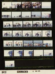 | Keywords: Ford B0493 NLGRF photo contact sheet (1976-07-04)(Gerald Ford Library).jpg White House Photographic Office WHPO is housed at the Gerald R Ford Presidential Library a branch of the National Archives and Records Administration NARA <br/><br/> This file is a 200 dpi photo contact sheet having images from roll of film B0493 of the August 9 1974 - January 20 1977 Gerald R Ford White House Photographic Office Series A0001-A9999 and B0001-B2886 photographs <br/><br/> The date on the photo contact sheet is the date the roll of film was processed not necessarily the date the photographs were taken See table below for additional details 1976-07-04 Gerald R Ford Presidential Library Image http //www fordlibrarymuseum gov/library/whphotos/B0493_NLGRF jpg B0493_NLGRF jpg from http //www fordlibrarymuseum gov/library/whphotos/19760704whpo pdf White House Photographs July 4 1976 of the http //www fordlibrarymuseum gov/Library/whphotos/whpo asp White House Photographic Collection page White House Photographic Office WHPO - Schumacher PD-USGov Institution Institution Gerald R Ford Presidential Library Table wikitable sortable + Photo contact sheet B0493 U S President Ford Administration Gerald R Ford Library Frame s Tone Subject proper Subject generic Names Geographic Location Photographer Date - 1-4 Color 4th of July Bicentennial Event - Prior to Arrival of GRF on the USS Forrestal CV-59 greeting handshaking standing talking; various angles and distances; all not in every frame Betty Ford Naval Personnel guests New York Harbor New York City NY USS Forrestal CV-59 - Flight Deck Schumacher 1976-07-04 - 5 Color 4th of July Bicentennial Event - Prior to Arrival of GRF on the USS Forrestal CV-59 ships in harbor near USS Forrestal New York Harbor New York City NY USS Forrestal CV-59 - Flight Deck Schumacher 1976-07-04 - 6 Color 4th of July Bicentennial Event - Prior to Arrival of GRF on the USS Forrestal CV-59 walking across flight deck Media Photographers New York Harbor New York City NY USS Forrestal CV-59 - Flight Deck Schumacher 1976-07-04 - 7 Color 4th of July Bicentennial Event - Arrival on Deck of USS Forrestal CV-59 - Operation Sail; Commander US Navy North Atlantic Fleet; Captain USS Forrestal greeting handshaking near Marine One; copter on right of frame GRF Adm Isaac Kidd Capt Joseph Barth Others New York Harbor New York City NY USS Forrestal CV-59 - Flight Deck Schumacher 1976-07-04 - 8-9 Color 4th of July Bicentennial Event - Arrival on Deck of USS Forrestal CV-59 - Operation Sail; Commander US Navy North Atlantic Fleet; Captain USS Forrestal walking across flight deck; various distances GRF Adm Isaac Kidd Capt Joseph Barth Others New York Harbor New York City NY USS Forrestal CV-59 - Flight Deck Schumacher 1976-07-04 - 10 Color 4th of July Bicentennial Event - Ringing of the Bicentennial Bell on the Flight Deck of the USS Forrestal CV-59 ; Commander US Navy North Atlantic Fleet; Captain USS Forrestal; Secretary of the Navy standing in line Betty Ford Adm Isaac Kidd Capt Joseph Barth Sec Mrs J William Middendorf New York Harbor New York City NY USS Forrestal CV-59 - Flight Deck Schumacher 1976-07-04 - 11-20 Color 4th of July Bicentennial Event - Ringing of the Bicentennial Bell on the Flight Deck of the USS Forrestal CV-59 ; Administrator American Revolution Bicentennial Administration ARBA ; Captain USS Forrestal GRF and Warner standing next to Bicentennial Bell; GRF ringing bell; others standing to side or in background; all not in every frame GRF John Warner Capt Joseph Barth; Naval Marine Personnel New York Harbor New York City NY USS Forrestal CV-59 - Flight Deck Schumacher 1976-07-04 - 21-22 Color 4th of July Bicentennial Event - Ringing of the Bicentennial Bell on the Flight Deck of the USS Forrestal CV-59 ; Captain USS Forrestal Barth standing next to Bicentennial Bell; others in background; all not in both frames Capt Joseph Barth; Naval Marine Personnel New York Harbor New York City NY USS Forrestal CV-59 - Flight Deck Schumacher 1976-07-04 - 23-24 Color 4th of July Bicentennial Event - President's Remarks Following Ringing of the Bicentennial Bell on the Flight Deck of the USS Forrestal CV59 ; Commander US Navy North Atlantic Fleet; Captain USS Forrestal seated listening to GRF's remarks Betty Ford Adm Isaac Kidd Capt Joseph Barth Mrs J William Middendorf Susan Ford New York Harbor New York City NY USS Forrestal CV-59 - Flight Deck Schumacher 1976-07-04 - 25-28 Color 4th of July Bicentennial Event - President's Remarks Following Ringing of the Bicentennial Bell on the Flight Deck of the USS Forrestal CV59 speaking at lectern; taken from low vantage point GRF New York Harbor New York City NY USS Forrestal CV-59 - Flight Deck Schumacher 1976-07-04 - 29-31 Color 4th of July Bicentennial Event - President's Remarks Following Ringing of the Bicentennial Bell on the Flight Deck of the USS Forrestal CV59 ; Commander US Navy North Atlantic Fleet; Captain USS Forrestal seated listening to GRF's remarks Betty Ford Adm Isaac Kidd Capt Joseph Barth Sec Mrs J William Middendorf Susan Ford New York Harbor New York City NY USS Forrestal CV-59 - Flight Deck Schumacher 1976-07-04 Gerald R Ford Presidential Library and Museum-cooperation PD-USGov Contact sheets by the Ford White House July 1976 |