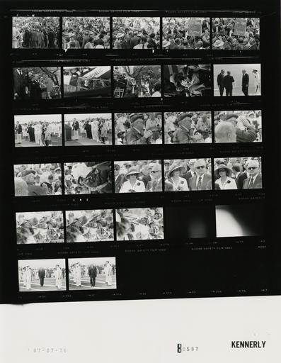 | Keywords: Ford B0597 NLGRF photo contact sheet (1976-07-04)(Gerald Ford Library).jpg White House Photographic Office WHPO is housed at the Gerald R Ford Presidential Library a branch of the National Archives and Records Administration NARA <br/><br/> This file is a 200 dpi photo contact sheet having images from roll of film B0597 of the August 9 1974 - January 20 1977 Gerald R Ford White House Photographic Office Series A0001-A9999 and B0001-B2886 photographs <br/><br/> The date on the photo contact sheet is the date the roll of film was processed not necessarily the date the photographs were taken See table below for additional details 1976-07-04 Gerald R Ford Presidential Library Image http //www fordlibrarymuseum gov/library/whphotos/B0597_NLGRF jpg B0597_NLGRF jpg from http //www fordlibrarymuseum gov/library/whphotos/19760704whpo pdf White House Photographs July 4 1976 of the http //www fordlibrarymuseum gov/Library/whphotos/whpo asp White House Photographic Collection page White House Photographic Office WHPO <br/> Creator David Hume Kennerly PD-USGov Institution Institution Gerald R Ford Presidential Library Table wikitable sortable + Photo contact sheet B0597 U S President Ford Administration Gerald R Ford Library Frame s Tone Subject proper Subject generic Names Geographic Location Photographer Date - 5-9 BW 4th of July Bicentennial Event - Trip to Philadelphia for Speech in Front of Independence Hall greeting handshaking smiling talking; GRF's back to camera; varoius angles and distances; all not in every frame GRF Secret Service Crowd Philadelphia PA Sidewalk Outside Independence Hall Kennerly 1976-07-04 - 10 BW 4th of July Bicentennial Event - Trip to Philadelphia for Speech in Front of Independence Hall; Archbishop of Philadelphia; Maor of Philadelphia standing hands over hearts for anthem; Susan in background GRF John Cardinal Krow Mayor Rizzo; Susan Ford; Others Philadelphia PA Stage Outside Independence Hall Kennerly 1976-07-04 - 11 BW 4th of July Bicentennial Event - Trip to Philadelphia for Speech in Front of Independence Hall; Archbishop of Philadelphia seated talking; long shot taken between opening in flags GRF John Cardinal Krow Philadelphia PA Stage Outside Independence Hall Kennerly 1976-07-04 - 12 BW 4th of July Bicentennial Event - Trip to Philadelphia for Speech in Front of Independence Hall; Archbishop of Philadelphia; Primate Greek Orthodox Church; Pastor Zion Baptist Church standing applauding; long shot from left of stage GRF John Cardinal Krow Mayor Rizzo Governor Shapp Rabbi Musleach Leon Sullivann Archbishop Iakovos Susan Ford; Others Philadelphia PA Stage Outside Independence Hall Kennerly 1976-07-04 - 13 BW 4th of July Bicentennial Event - Trip to Philadelphia for Speech in Front of Independence Hall seated listening Susan Ford Philadelphia PA Stage Outside Independence Hall Kennerly 1976-07-04 - 14 BW 4th of July Bicentennial Event - Arrival on USS Forrestal CV-59 for Operation Sail Event GRF and Kidd walking across deck approaching others GRF Adm Kidd J William Middendorf Emil Mossbacher New York Harbor New York City NY Flight Deck USS Forrestal CV59 Kennerly 1976-07-04 - 15-16 BW 4th of July Bicentennial Event - Operation Sail Event Aboard the USS Forrestal CV-59 standing for anthem; civiians with hands over hearts military saluting GRF Susan Ford Adm Kidd J William Middendorf Emil Mossbacher Sen Warner Others New York Harbor New York City NY Flight Deck USS Forrestal CV59 Kennerly 1976-07-04 - 17-21 BW 4th of July Bicentennial Event - Operation Sail Event Aboard the USS Forrestal CV-59 - Ambassador from the Union of Soviet Socialist Republics USSR to the United States Dobrynin seated wearing cap and sunglasses; various angles and distances Anatoly Dobrynin; Others New York Harbor New York City NY Flight Deck USS Forrestal CV59 Kennerly 1976-07-04 - 22-24 BW 4th of July Bicentennial Event - Operation Sail Event Aboard the USS Forrestal CV-59 - Her Serene Highness The Princess of Monaco; Prince of Monaco standing watching festivities; Princess wearing large bonnet and sunglasses Princess Grace Kelly Prince Rainier III Grimaldi ; Others New York Harbor New York City NY Flight Deck USS Forrestal CV59 Kennerly 1976-07-04 - 25-27 BW 4th of July Bicentennial Event - Operation Sail Event Aboard the USS Forrestal CV-59 Man smiling at camera; others in background Unidentified Man; Others New York Harbor New York City NY Flight Deck USS Forrestal CV59 Kennerly 1976-07-04 - 28-29 BW 4th of July Bicentennial Event - Operation Sail Event Aboard the USS Forrestal CV-59 New York Harbor New York City NY Flight Deck USS Forrestal CV59 Kennerly 1976-07-04 - 30-31 BW 4th of July Bicentennial Event - Operation Sail Event Aboard the USS Forrestal CV-59 GRF walking across flight deck; navy saluting GRF; Naval Personnel New York Harbor New York City NY Flight Deck USS Forrestal CV59 Kennerly 1976-07-04 Gerald R Ford Presidential Library and Museum-cooperation PD-USGov Contact sheets by the Ford White House July 1976 Photographs by David Hume Kennerly from 1976 |