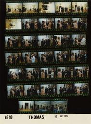 | Keywords: Ford B0699 NLGRF photo contact sheet (1976-07-15)(Gerald Ford Library).jpg White House Photographic Office WHPO is housed at the Gerald R Ford Presidential Library a branch of the National Archives and Records Administration NARA <br/><br/> This file is a 200 dpi photo contact sheet having images from roll of film B0699 of the August 9 1974 - January 20 1977 Gerald R Ford White House Photographic Office Series A0001-A9999 and B0001-B2886 photographs <br/><br/> The date on the photo contact sheet is the date the roll of film was processed not necessarily the date the photographs were taken See table below for additional details 1976-07-15 Gerald R Ford Presidential Library Image http //www fordlibrarymuseum gov/library/whphotos/B0699_NLGRF jpg B0699_NLGRF jpg from http //www fordlibrarymuseum gov/library/whphotos/19760715whpo pdf White House Photographs July 15 1976 of the http //www fordlibrarymuseum gov/Library/whphotos/whpo asp White House Photographic Collection page White House Photographic Office WHPO - Thomas PD-USGov Institution Institution Gerald R Ford Presidential Library Table wikitable sortable + Photo contact sheet B0699 U S President Ford Administration Gerald R Ford Library Frame s Tone Subject proper Subject generic Names Geographic Location Photographer Date - 5-10 Color Reception Prior to State Dinner in Honor of the Chancellor of the Federal Republic of Germany FRG Mrs Schmidt standing talking in groups; various angles and distances; all not in every frame; formal wear GRF Betty Ford Helmut Schmidt Loki Schmidt; Rockefeller Henry Nancy Kissinger Hans-Dietrich Genscher Mr Mrs Martin Hillebrand Amb Mrs Berndt von Staden Amb Mrs Stuart Rockwell Second Floor Residence - Yellow Oval Room Thomas 1976-07-15 - 11-16 Color Receiving Line During State Dinner in Honor of the Chancellor of the Federal Republic of Germany FRG Mrs Schmidt greeting handshaking standing talking; all not in every frame; formal wear GRF Betty Ford Helmut Schmidt Loki Schmidt; Others East Room Thomas 1976-07-15 - 17-18 Color Receiving Line During State Dinner in Honor of the Chancellor of the Federal Republic of Germany FRG Mrs Schmidt greeting handshaking standing talking; all not in both frames; formal wear GRF Betty Ford Helmut Schmidt Loki Schmidt; Amd Henry Cabot Lodge East Room Thomas 1976-07-15 - 19-21 Color Receiving Line During State Dinner in Honor of the Chancellor of the Federal Republic of Germany FRG Mrs Schmidt greeting handshaking standing talking; all not in every frame; formal wear GRF Betty Ford Helmut Schmidt Loki Schmidt; Others East Room Thomas 1976-07-15 - 22 Color Receiving Line During State Dinner in Honor of the Chancellor of the Federal Republic of Germany FRG Mrs Schmidt greeting handshaking standing talking; formal wear Betty Ford Helmut Schmidt Loki Schmidt; James Baker III East Room Thomas 1976-07-15 - 23-32 Color Receiving Line During State Dinner in Honor of the Chancellor of the Federal Republic of Germany FRG Mrs Schmidt greeting handshaking standing talking; all not in every frame; formal wear GRF Betty Ford Helmut Schmidt Loki Schmidt; Others East Room Thomas 1976-07-15 - 33-34 Color Receiving Line During State Dinner in Honor of the Chancellor of the Federal Republic of Germany FRG Mrs Schmidt greeting handshaking standing talking; all not in both frames; formal wear Betty Ford Helmut Schmidt Loki Schmidt; Sonny Jurgensen East Room Thomas 1976-07-15 - 35 Color Following Receiving Line During State Dinner in Honor of the Chancellor of the Federal Republic of Germany FRG Mrs Schmidt Schmidt and BF walking backs to camera; exiting to Cross Hall; Guard on either side of door; formal wear Helmut Schmidt Betty Ford; Honor Guard East Room Thomas 1976-07-15 - 36-37 Color Following Receiving Line During State Dinner in Honor of the Chancellor of the Federal Republic of Germany FRG Mrs Schmidt walking through room; GRF with Mrs Schmidt BF with Schmidt; all not in both frames; formal wear GRF Betty Ford Helmut Schmidt Loki Schmidt; Others Blue Room Thomas 1976-07-15 Gerald R Ford Presidential Library and Museum-cooperation PD-USGov Contact sheets by the Ford White House July 1976 |