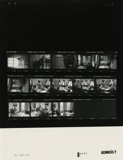 | Keywords: Ford B0777 NLGRF photo contact sheet (1976-07-19)(Gerald Ford Library).jpg White House Photographic Office WHPO is housed at the Gerald R Ford Presidential Library a branch of the National Archives and Records Administration NARA <br/><br/> This file is a 200 dpi photo contact sheet having images from roll of film B0777 of the August 9 1974 - January 20 1977 Gerald R Ford White House Photographic Office Series A0001-A9999 and B0001-B2886 photographs <br/><br/> The date on the photo contact sheet is the date the roll of film was processed not necessarily the date the photographs were taken See table below for additional details 1976-07-19 Gerald R Ford Presidential Library Image http //www fordlibrarymuseum gov/library/whphotos/B0777_NLGRF jpg B0777_NLGRF jpg from http //www fordlibrarymuseum gov/library/whphotos/19760719whpo pdf White House Photographs July 19 1976 of the http //www fordlibrarymuseum gov/Library/whphotos/whpo asp White House Photographic Collection page White House Photographic Office WHPO <br/> Creator David Hume Kennerly PD-USGov Institution Institution Gerald R Ford Presidential Library Table wikitable sortable + Photo contact sheet B0777 U S President Ford Administration Gerald R Ford Library Frame s Tone Subject proper Subject generic Names Geographic Location Photographer Date - 3 BW standing looking out window; fountain in background Unidentified Man Blue Room Kennerly 1976-07-19 - 4-5 BW Prior to 35th Press Conference on the North Grounds of the White House GRF seated at table writimg; O'Donnell and Cheney standing nearby; doorway in background GRF O'Donnell Cheney Unidentified White House Hallway; likely on North Side Kennerly 1976-07-19 - 6-8 BW Congratulatory Telephone Call to the NASA Staff at the Jet Propulsion Center in Pasadena California upon the Successful Landing of the Viking II Spacecraft on Mars seated at desk talking on telephone GRF Oval office Kennerly 1976-07-19 - 9-12 BW Cabinet Meeting; Also includes Several President Ford Committee PFC Members seated around table; various angles and distances; all not in every frame GRF Rockefeller Kissinger Rumsfeld Levi Kleppe Butz Richardson Usery Mathews C Hills Coleman G Dixon for Simon Buchen Dent Lynn Marsh Hartmann Cannon Cheney Connor Friedersdorf Greenspan Nessen Scowcroft Seidman Schmults Raoul-Duval Gergen Train Zarb Cabinet Room Kennerly 1976-07-20 - 13-15 BW Meeting with Deputy Press Secretary seated around desk talking; various angles and distances GRF Greener Oval Office Kennerly 1976-07-20 Gerald R Ford Presidential Library and Museum-cooperation PD-USGov Contact sheets by the Ford White House July 1976 Photographs by David Hume Kennerly from 1976 |