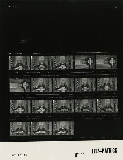 Keywords: Ford B0797 NLGRF photo contact sheet (1976-07-22)(Gerald Ford Library).jpg White House Photographic Office WHPO is housed at the Gerald R Ford Presidential Library a branch of the National Archives and Records Administration NARA <br/><br/> This file is a 200 dpi photo contact sheet having images from roll of film B0797 of the August 9 1974 - January 20 1977 Gerald R Ford White House Photographic Office Series A0001-A9999 and B0001-B2886 photographs <br/><br/> The date on the photo contact sheet is the date the roll of film was processed not necessarily the date the photographs were taken See table below for additional details 1976-07-22 Gerald R Ford Presidential Library Image http //www fordlibrarymuseum gov/library/whphotos/B0797_NLGRF jpg B0797_NLGRF jpg from http //www fordlibrarymuseum gov/library/whphotos/19760722whpo pdf White House Photographs July 22 1976 of the http //www fordlibrarymuseum gov/Library/whphotos/whpo asp White House Photographic Collection page White House Photographic Office WHPO - Fitz-Patrick PD-USGov Institution Institution Gerald R Ford Presidential Library Table wikitable sortable + Photo contact sheet B0797 U S President Ford Administration Gerald R Ford Library Frame s Tone Subject proper Subject generic Names Geographic Location Photographer Date - 1A-12A BW Statement to the Press on the Legislative Agenda of the Congress seated at desk holding speech copy speaking GRF Oval Office Fitz-Patrick 1976-07-22 - 13A-18A BW Statement to the Press on the Legislative Agenda of the Congress seated at desk signing document speaking GRF Oval Office Fitz-Patrick 1976-07-22 Gerald R Ford Presidential Library and Museum-cooperation PD-USGov Contact sheets by the Ford White House July 1976 |