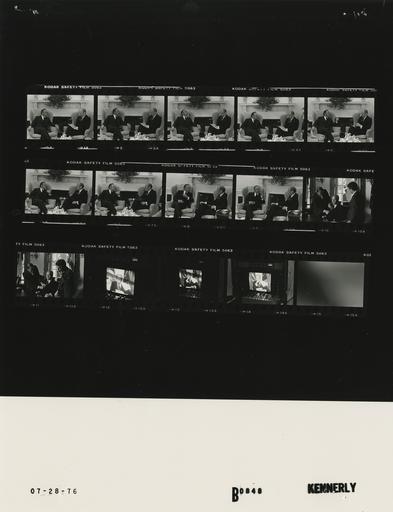 | Keywords: Ford B0848 NLGRF photo contact sheet (1976-07-27)(Gerald Ford Library).jpg White House Photographic Office WHPO is housed at the Gerald R Ford Presidential Library a branch of the National Archives and Records Administration NARA <br/><br/> This file is a 200 dpi photo contact sheet having images from roll of film B0848 of the August 9 1974 - January 20 1977 Gerald R Ford White House Photographic Office Series A0001-A9999 and B0001-B2886 photographs <br/><br/> The date on the photo contact sheet is the date the roll of film was processed not necessarily the date the photographs were taken See table below for additional details 1976-07-27 Gerald R Ford Presidential Library Image http //www fordlibrarymuseum gov/library/whphotos/B0848_NLGRF jpg B0848_NLGRF jpg from http //www fordlibrarymuseum gov/library/whphotos/19760727whpo pdf White House Photographs July 27 1976 of the http //www fordlibrarymuseum gov/Library/whphotos/whpo asp White House Photographic Collection page White House Photographic Office WHPO <br/> Creator David Hume Kennerly PD-USGov Institution Institution Gerald R Ford Presidential Library Table wikitable sortable + Photo contact sheet B0848 U S President Ford Administration Gerald R Ford Library Frame s Tone Subject proper Subject generic Names Geographic Location Photographer Date - 1-9 BW Chairman of the Board of Jeno's Incorporated seated talking near fireplace GRF Jeno Paulucci Oval Office Kennerly 1976-07-27 - 10-11 BW Prior to Taping Public Service Videotapes GRF seated at table; techs putting lavaliere microphone on GRF GRF; Television Technicians Cabinet Room Kennerly 1976-07-27 - 12-14 BW Taping Public Service Videotapes on television monitor; speaking GRF Cabinet Room Kennerly 1976-07-27 Gerald R Ford Presidential Library and Museum-cooperation PD-USGov Contact sheets by the Ford White House July 1976 Photographs by David Hume Kennerly from 1976 |