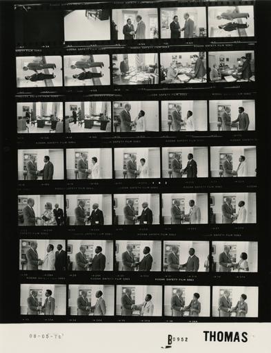 | Keywords: Ford B0952 NLGRF photo contact sheet (1976-08-04)(Gerald Ford Library).jpg White House Photographic Office WHPO is housed at the Gerald R Ford Presidential Library a branch of the National Archives and Records Administration NARA <br/><br/> This file is a 200 dpi photo contact sheet having images from roll of film B0952 of the August 9 1974 - January 20 1977 Gerald R Ford White House Photographic Office Series A0001-A9999 and B0001-B2886 photographs <br/><br/> The date on the photo contact sheet is the date the roll of film was processed not necessarily the date the photographs were taken See table below for additional details 1976-08-04 Gerald R Ford Presidential Library Image http //www fordlibrarymuseum gov/library/whphotos/B0952_NLGRF jpg B0952_NLGRF jpg from http //www fordlibrarymuseum gov/library/whphotos/19760804whpo pdf White House Photographs August 4 1976 of the http //www fordlibrarymuseum gov/Library/whphotos/whpo asp White House Photographic Collection page White House Photographic Office WHPO - Thomas PD-USGov Institution Institution Gerald R Ford Presidential Library Table wikitable sortable + Photo contact sheet B0952 U S President Ford Administration Gerald R Ford Library Frame s Tone Subject proper Subject generic Names Geographic Location Photographer Date - 4A BW Thomas 1976-08-04 - 5A-9A BW Editor Italian Tribune News Newark NJ greeting handshaking; standing talking GRF Ace Alanga Oval Office Thomas 1976-08-04 - 10A-12A BW Editor Italian Tribune News Newark NJ GRF seated at desk; Alanga standing nearby GRF Ace Alanga Oval Office Thomas 1976-08-04 - 13A-14A BW Editor Italian Tribune News Newark NJ standing talking near desk GRF Ace Alanga Oval Office Thomas 1976-08-04 - 15A-37 BW Meeting with Black Republican Political Leaders greeting handshaking; all not in frames GRF E Allen B Brooks J Denson H Evans H Ferguson W Franklin III E Jenkins C A Scott Wm Seawright F Troy L Von Blaine B Williams J Blair C Crawford J Crawford R Evans M Griffith Wm Mercer C Newman S Thomas; Calhoun Oval Office Thomas 1976-08-04 Gerald R Ford Presidential Library and Museum-cooperation PD-USGov Contact sheets by the Ford White House August 1976 |