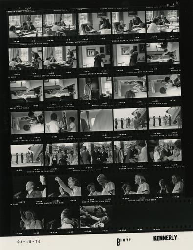 Keywords: Ford B1077 NLGRF photo contact sheet (1976-08-15)(Gerald Ford Library).jpg White House Photographic Office WHPO is housed at the Gerald R Ford Presidential Library a branch of the National Archives and Records Administration NARA <br/><br/> This file is a 200 dpi photo contact sheet having images from roll of film B1077 of the August 9 1974 - January 20 1977 Gerald R Ford White House Photographic Office Series A0001-A9999 and B0001-B2886 photographs <br/><br/> The date on the photo contact sheet is the date the roll of film was processed not necessarily the date the photographs were taken See table below for additional details 1976-08-15 Gerald R Ford Presidential Library Image http //www fordlibrarymuseum gov/library/whphotos/B1077_NLGRF jpg B1077_NLGRF jpg from http //www fordlibrarymuseum gov/library/whphotos/19760815whpo pdf White House Photographs August 15 1976 of the http //www fordlibrarymuseum gov/Library/whphotos/whpo asp White House Photographic Collection page White House Photographic Office WHPO <br/> Creator David Hume Kennerly PD-USGov Institution Institution Gerald R Ford Presidential Library Table wikitable sortable + Photo contact sheet B1077 U S President Ford Administration Gerald R Ford Library Frame s Tone Subject proper Subject generic Names Geographic Location Photographer Date - 2A-8A BW GRF seated at desk; BS and Penny seated; Man leaning over desk talking to GRF; various angles and distances; all not in every frame GRF Penny Scowcroft Unidentified Man Oval Office Kennerly 1976-08-15 - 9A-10A BW standing talking on telephone GRF Second Floor - President's Private Office Kennerly 1976-08-15 - 11A-14A BW standing talking on telephone Betty Ford Second Floor - President's Private Office Kennerly 1976-08-15 - 15A-19A BW Flight to Kansas City Missouri BF standing Weidenfeld seated; GRF coatless in background in President's Cabin Betty Ford Weidenfeld First Lady's Cabin - Air Force One Kennerly 1976-08-15 - 20A-22A BW Arrival in Kansas City Missouri GRF and BF descending steps of Air Force One; greeting handshaking others at base of steps GRF Betty Ford Others Kansas City MO Kansas City Municipal Airport Kennerly 1976-08-15 - 23A-26A BW Trip to Kansas City Missouri - Convention - Arrival at the Crown Center Hotel greeting handshaking embracing; various distances; all not in frames GRF Betty Ford Susan Ford Steve Ford Jack Ford Vice President Mrs Rockefeller Gov Mrs Milliken Morton Others Kansas City MO Crown Center Hotel - Outside Kennerly 1976-08-15 - 27A-28A BW Trip to Kansas City Missouri - Convention - Rally Upon Arrival at the Crown Center Hotel smiling; raising held hands; close ups GRF Happy Rockefeller Kansas City MO Crown Center Hotel Kennerly 1976-08-15 - 29A-30A BW Trip to Kansas City Missouri - Convention - Rally Upon Arrival at the Crown Center Hotel smiling; on stage; close ups Betty Ford Susan Ford Kansas City MO Crown Center Hotel Kennerly 1976-08-15 - 31A-32A BW Trip to Kansas City Missouri - Convention - Rally Upon Arrival at the Crown Center Hotel smiling; raising held hands; close ups GRF Susan Ford Kansas City MO Crown Center Hotel Kennerly 1976-08-15 - 33A BW Trip to Kansas City Missouri - Convention - Rally Upon Arrival at the Crown Center Hotel smiling; GRF's arm on BF's shoulder; close up GRF Betty Ford Kansas City MO Crown Center Hotel Kennerly 1976-08-15 - 34A BW Trip to Kansas City Missouri - Convention - Rally Upon Arrival at the Crown Center Hotel BF reaching down handshaking Betty Ford Crowd Kansas City MO Crown Center Hotel Kennerly 1976-08-15 Gerald R Ford Presidential Library and Museum-cooperation PD-USGov Contact sheets by the Ford White House August 1976 Photographs by David Hume Kennerly from 1976