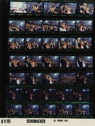 | Keywords: Ford B1185 NLGRF photo contact sheet (1976-08-18)(Gerald Ford Library).jpg White House Photographic Office WHPO is housed at the Gerald R Ford Presidential Library a branch of the National Archives and Records Administration NARA <br/><br/> This file is a 200 dpi photo contact sheet having images from roll of film B1185 of the August 9 1974 - January 20 1977 Gerald R Ford White House Photographic Office Series A0001-A9999 and B0001-B2886 photographs <br/><br/> The date on the photo contact sheet is the date the roll of film was processed not necessarily the date the photographs were taken See table below for additional details 1976-08-18 Gerald R Ford Presidential Library Image http //www fordlibrarymuseum gov/library/whphotos/B1185_NLGRF jpg B1185_NLGRF jpg from http //www fordlibrarymuseum gov/library/whphotos/19760818whpo pdf White House Photographs August 18 1976 of the http //www fordlibrarymuseum gov/Library/whphotos/whpo asp White House Photographic Collection page White House Photographic Office WHPO - Schumacher PD-USGov Institution Institution Gerald R Ford Presidential Library Table wikitable sortable + Photo contact sheet B1185 U S President Ford Administration Gerald R Ford Library Frame s Tone Subject proper Subject generic Names Geographic Location Photographer Date - 1 Color Trip to Kansas City Missouri - Convention Rally signs in background Billy Zoeli Crowd Kansas City MO Kemper Arena Schumacher 1976-08-18 - 2-8 Color Trip to Kansas City Missouri - Convention - 4th Session of the Republican National Convention seated listening talking laughing; all not in frames Steve Ford Betty Ford Susan Ford Jack Ford Mike Gayle Ford Tom Janet Ford Dick Ellen Ford Others Kansas City MO Kemper Arena Schumacher 1976-08-18 - 9-23 Color Trip to Kansas City Missouri - Convention - Demonstration at the 4th Session of the Republican National Convention standing jumping applauding high-fiving embracing; all not in every frame Steve Ford Betty Ford Susan Ford Jack Ford Mike Gayle Ford Tom Janet Ford Dick Ellen Ford Sonny Bono Others Kansas City MO Kemper Arena Schumacher 1976-08-18 - 24 Color Trip to Kansas City Missouri - Convention - Delegate Demonstration at the 4th Session of the Republican National Convention standing applauding whooping; holding signs; taken from upper level Crowd Kansas City MO Kemper Arena Schumacher 1976-08-18 - 25-35 Color Trip to Kansas City Missouri - Convention - Demonstration at the 4th Session of the Republican National Convention standing applauding; all not in every frame Steve Ford Betty Ford Susan Ford Jack Ford Mike Gayle Ford Tom Janet Ford Dick Ellen Ford Others Kansas City MO Kemper Arena Schumacher 1976-08-18 Gerald R Ford Presidential Library and Museum-cooperation PD-USGov Contact sheets by the Ford White House August 1976 |