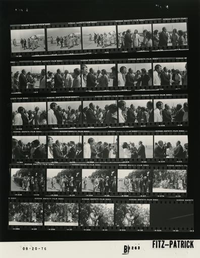 | Keywords: Ford B1263 NLGRF photo contact sheet (1976-08-20)(Gerald Ford Library).jpg White House Photographic Office WHPO is housed at the Gerald R Ford Presidential Library a branch of the National Archives and Records Administration NARA <br/><br/> This file is a 200 dpi photo contact sheet having images from roll of film B1263 of the August 9 1974 - January 20 1977 Gerald R Ford White House Photographic Office Series A0001-A9999 and B0001-B2886 photographs <br/><br/> The date on the photo contact sheet is the date the roll of film was processed not necessarily the date the photographs were taken See table below for additional details 1976-08-20 Gerald R Ford Presidential Library Image http //www fordlibrarymuseum gov/library/whphotos/B1263_NLGRF jpg B1263_NLGRF jpg from http //www fordlibrarymuseum gov/library/whphotos/19760820whpo pdf White House Photographs August 20 1976 of the http //www fordlibrarymuseum gov/Library/whphotos/whpo asp White House Photographic Collection page White House Photographic Office WHPO - Fitz-Patrick PD-USGov Institution Institution Gerald R Ford Presidential Library Table wikitable sortable + Photo contact sheet B1263 U S President Ford Administration Gerald R Ford Library Frame s Tone Subject proper Subject generic Names Geographic Location Photographer Date - 3A-5A BW Trip to Russell Kansas - Prior to Helicopter Flight to Russell Kansas -Salina Kansas walking from Air Force One waving; plane GRF Dole Elizabeth Dole; Secret Service Salina KS Salina Airport Fitz-Patrick 1976-08-20 - 6A-20A BW Trip to Russell Kansas; Prior to Helicopter Flight to Russell Kansas -Salina Kansas greeting handshaking; all not in every frame GRF Welcoming Committee Crowd Salina KS Salina Airport Fitz-Patrick 1976-08-20 - 21A-22A BW Trip to Kansas; Arrival in Russell; Governor and US Senator from Kansas KS - Russell Kansas greeting handshaking; all not in both frames; Marine One helicopter in background GRF Gov Mrs Bennett; Sen Mrs Pearson Others Russell KS Russell Airport Fitz-Patrick 1976-08-20 - 23A-26A BW Trip to Kansas; Rally for Vice President-Designate in Home Town - Russell Kansas walking waving; all not in every frame GRF Dole Secret Service Crowd Russell KS Street Fitz-Patrick 1976-08-20 - 27A-29A BW Trip to Kansas; Rally for Vice President-Designate in Home Town; Wife Daughter and Mother of Sen Dole -Russell Kansas seated on platform listening GRF Sen Mrs Elizabeth Dole; Robin Dole Doran R Dole Others Russell KS Russell County Courthouse -Outside Fitz-Patrick 1976-08-20 - 30A-31A BW Trip to Kansas; Rally for Vice President-Designate in Home Town - Russell Kansas Dole introducing man to GRF; handshaking GRF Dole Unidentified Russell KS Russell County Courthouse -Outside Fitz-Patrick 1976-08-20 Gerald R Ford Presidential Library and Museum-cooperation PD-USGov Contact sheets by the Ford White House August 1976 |
