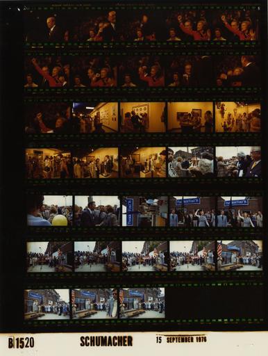 | Keywords: Ford B1520 NLGRF photo contact sheet (1976-09-15)(Gerald Ford Library).jpg White House Photographic Office WHPO is housed at the Gerald R Ford Presidential Library a branch of the National Archives and Records Administration NARA <br/><br/> This file is a 200 dpi photo contact sheet having images from roll of film B1520 of the August 9 1974 - January 20 1977 Gerald R Ford White House Photographic Office Series A0001-A9999 and B0001-B2886 photographs <br/><br/> The date on the photo contact sheet is the date the roll of film was processed not necessarily the date the photographs were taken See table below for additional details 1976-09-15 Gerald R Ford Presidential Library Image http //www fordlibrarymuseum gov/library/whphotos/B1520_NLGRF jpg B1520_NLGRF jpg from http //www fordlibrarymuseum gov/library/whphotos/19760915whpo pdf White House Photographs September 15 1976 of the http //www fordlibrarymuseum gov/Library/whphotos/whpo asp White House Photographic Collection page White House Photographic Office WHPO - Schumacher PD-USGov Institution Institution Gerald R Ford Presidential Library Table wikitable sortable + Photo contact sheet B1520 U S President Ford Administration Gerald R Ford Library Frame s Tone Subject proper Subject generic Names Geographic Location Photographer Date - 0A Color Trip to Michigan - Campaign Kickoff Rally at the University of Michigan at lectern head down close up GRF Ann Arbor MI University of Michigan -Crisler Arena Schumacher 1976-09-15 - 1A-10A Color Trip to Michigan -Campaign Kickoff Rally at the University of Michigan standing cheerting with right arm; others in background; BF obscured in some frames Betty Ford Ann Arbor MI University of Michigan -Crisler Arena Schumacher 1976-09-15 - 11A-17A Color Trip to Michigan -Campaign Trip to Lansing MI - Tour of Kresge Art Center Gallery touring art center looking at Michigan Folklore Exhibit; various angles and distances; all not in every frame Betty Ford Helen Milliken Delores Wharton Others Lansing MI Kresge Art Center Gallery Schumacher 1976-09-16 - 18A-21A Color Trip to Michigan -Campaign Trip to Lansing MI greeting handshaking; various angles and distances; all not in every frame Betty Ford Crowd Lansing MI Republican Campaign Phone Center - Outside Schumacher 1976-09-16 - 22A-32A Color Trip to Michigan -Campaign Trip to Lansing MI BF standing on small stage speaking gesturing various angles and distances; all not in every frame Betty Ford Crowd Lansing MI Republican Campaign Phone Center - Outside Schumacher 1976-09-16 Gerald R Ford Presidential Library and Museum-cooperation PD-USGov Contact sheets by the Ford White House September 1976 |
