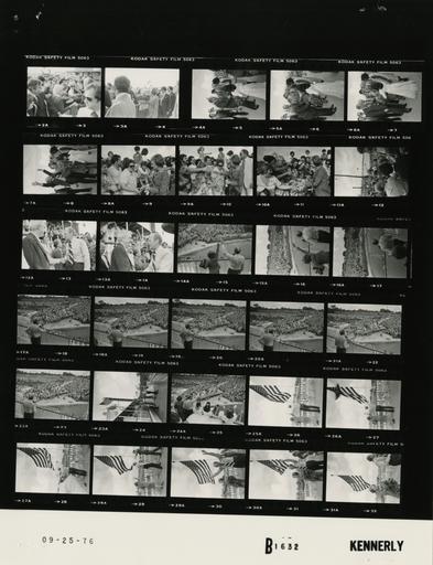| Keywords: Ford B1632 NLGRF photo contact sheet (1976-09-25)(Gerald Ford Library).jpg White House Photographic Office WHPO is housed at the Gerald R Ford Presidential Library a branch of the National Archives and Records Administration NARA <br/><br/> This file is a 200 dpi photo contact sheet having images from roll of film B1632 of the August 9 1974 - January 20 1977 Gerald R Ford White House Photographic Office Series A0001-A9999 and B0001-B2886 photographs <br/><br/> The date on the photo contact sheet is the date the roll of film was processed not necessarily the date the photographs were taken See table below for additional details 1976-09-25 Gerald R Ford Presidential Library Image http //www fordlibrarymuseum gov/library/whphotos/B1632_NLGRF jpg B1632_NLGRF jpg from http //www fordlibrarymuseum gov/library/whphotos/19760925whpo pdf White House Photographs September 25 1976 of the http //www fordlibrarymuseum gov/Library/whphotos/whpo asp White House Photographic Collection page White House Photographic Office WHPO <br/> Creator David Hume Kennerly PD-USGov Institution Institution Gerald R Ford Presidential Library Table wikitable sortable + Photo contact sheet B1632 U S President Ford Administration Gerald R Ford Library Frame s Tone Subject proper Subject generic Names Geographic Location Photographer Date - 3-4 BW Campaign Trip to Louisiana - Arrival in New Orleans greeting handshaking; various angles and distances; all not in every frame GRF Betty Ford Crowd Secret Service Others Kenner LA New Orleans International Airport Kennerly 1976-09-25 - 5-8 BW Campaign Trip to Louisiana - Cruise Aboard SS Natchez Paddleboat GRF bending; BF receiving flowers from girl; GRF standing waving in last frame GRF Betty Ford Unidentified Girl Others Destrehan LA Destrehan Ferry Landing Kennerly 1976-09-25 - 9-11 BW Campaign Trip to Louisiana - Cruise Aboard SS Natchez Paddleboat greeting handshaking; all not in every frame Betty Ford Crowd Secret Service Destrehan LA Destrehan Ferry Landing Kennerly 1976-09-25 - 12-14 BW Campaign Trip to Louisiana - Cruise Aboard SS Natchez Paddleboat greeting handshaking; all not in every frame GRF Crowd Secret Service Destrehan LA Destrehan Ferry Landing Kennerly 1976-09-25 - 15-16 BW Campaign Trip to Louisiana - Cruise Aboard SS Natchez Paddleboat GRF on upper deck of SS Natchez holding raised hands; backs to camera; crowd on shore in background; taken from higher level GRF Betty Ford Crowd Destrehan LA Destrehan Ferry Landing Kennerly 1976-09-25 - 17-23 BW Campaign Trip to Louisiana - Cruise Aboard SS Natchez Paddleboat GRF on upper deck of SS Natchez talking waving; back to camera; crowd on shore in background; taken from higher level GRF Crowd Destrehan LA Destrehan Ferry Landing Kennerly 1976-09-25 - 24 BW Campaign Trip to Louisiana - Cruise Aboard SS Natchez Paddleboat GRF on deck speaking toward crowd not seen ; others standing nearby; women in 19th Century gowns GRF Betty Ford Unidentified women Others Destrehan LA Destrehan Ferry Landing Kennerly 1976-09-25 - 25 BW Campaign Trip to Louisiana - Cruise Aboard SS Natchez Paddleboat on upper deck waving; backs to camera; crowd on shore in background; taken from higher level GRF Betty Ford Unidentified women Crowd Destrehan LA Destrehan Ferry Landing Kennerly 1976-09-25 - 26-29 BW Campaign Trip to Louisiana - Cruise Aboard SS Natchez Paddleboat GRF and BF standing on deck waving under billowing flag; backs to camera; Others not in every frame GRF Betty Ford Others Destrehan LA Destrehan Ferry Landing Kennerly 1976-09-25 - 30-32 BW Campaign Trip to Louisiana - Cruise Aboard SS Natchez Paddleboat GRF and BF walking waving; billowing flag in background; BF carrying flowers GRF Betty Ford Others Destrehan LA Destrehan Ferry Landing Kennerly 1976-09-25 Gerald R Ford Presidential Library and Museum-cooperation PD-USGov Contact sheets by the Ford White House September 1976 Photographs by David Hume Kennerly from 1976 |