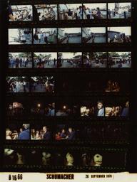 | Keywords: Ford B1666 NLGRF photo contact sheet (1976-09-26)(Gerald Ford Library).jpg White House Photographic Office WHPO is housed at the Gerald R Ford Presidential Library a branch of the National Archives and Records Administration NARA <br/><br/> This file is a 200 dpi photo contact sheet having images from roll of film B1666 of the August 9 1974 - January 20 1977 Gerald R Ford White House Photographic Office Series A0001-A9999 and B0001-B2886 photographs <br/><br/> The date on the photo contact sheet is the date the roll of film was processed not necessarily the date the photographs were taken See table below for additional details 1976-09-26 Gerald R Ford Presidential Library Image http //www fordlibrarymuseum gov/library/whphotos/B1666_NLGRF jpg B1666_NLGRF jpg from http //www fordlibrarymuseum gov/library/whphotos/19760926whpo pdf White House Photographs September 26 1976 of the http //www fordlibrarymuseum gov/Library/whphotos/whpo asp White House Photographic Collection page White House Photographic Office WHPO - Schumacher PD-USGov Institution Institution Gerald R Ford Presidential Library Table wikitable sortable + Photo contact sheet B1666 U S President Ford Administration Gerald R Ford Library Frame s Tone Subject proper Subject generic Names Geographic Location Photographer Date - 3A-12A Color Campaign Trip to Mississippi - Tour of Mavar's Shrimp and Oyster Company walking talking handshaking; various angles and distances; all not in every frame; GRF coatless GRF Shrimp Boat Crews; Others Biloxi MS Biloxi Industrial Park Schumacher 1976-09-26 - 13A Color Campaign Trip to Mississippi - Rally at Beach Park greeting handshaking talking; GRF coatless GRF Former Rep Colmer Others Pascagoula MS Beach Park Schumacher 1976-09-26 - 14A Color Campaign Trip to Mississippi - Rally at Beach Park Lott on small platform speaking; GRF and Lott coatless GRF Trent Lott Others Pascagoula MS Beach Park Schumacher 1976-09-26 - 15A-17A Color Campaign Trip to Mississippi - Rally at Beach Park GRF on small platform speaking; coatless; various angles and distances; all not in every frame GRF Crowd Others Pascagoula MS Beach Park Schumacher 1976-09-26 - 18A Color Campaign Trip to Mississippi - Rally at Beach Park greeting handshaking; GRF coatless GRF Crowd Others Pascagoula MS Beach Park Schumacher 1976-09-26 - 19A Color Campaign Trip to Mississippi - Rally at Beach Park GRF coatless; arms raised may be waving appears to be conducting band; all of band not seen GRF Band Crowd Pascagoula MS Beach Park Schumacher 1976-09-26 - 20A-21A Color Campaign Trip to Alabama; Rally Prior to Departure for Miami; Head Football Coach University of Alabama - Mobile Alabama standing laughing near lectern; night shot GRF Paul Bear Bryant Mobile AL Bates Field Municipal Airport Schumacher 1976-09-26 - 22A Color Campaign Trip to Alabama; Rally Prior to Departure for Miami; Governor of Alabama AL - Mobile Alabama GRF at lectern; Wallace seated nearby; night shot GRF Gov George Wallace Mobile AL Bates Field Municipal Airport Schumacher 1976-09-26 - 23A-32A Color Campaign Trip to Alabama; Rally Prior to Departure for Miami - Mobile Alabama GRF not in 1st frame; kids holding Peanuts are hard to swallow sign in 1st frame; greeting handshaking talking; various angles and distances; all not in every frame GRF Crowd Secret Service Mobile AL Bates Field Municipal Airport Schumacher 1976-09-26 - 33A-36A Color Campaign Trip to Alabama; Rally Prior to Departure for Miami - Mobile Alabama women in foreground wearing 19th Century gowns; too dark to see if GRF in photos Secret Service Unidentified women GRF Mobile AL Bates Field Municipal Airport Schumacher 1976-09-26 Gerald R Ford Presidential Library and Museum-cooperation PD-USGov Contact sheets by the Ford White House September 1976 |