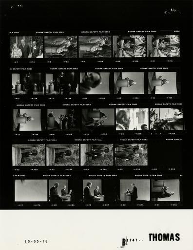 | Keywords: Ford B1747 NLGRF photo contact sheet (1976-10-06)(Gerald Ford Library).jpg White House Photographic Office WHPO is housed at the Gerald R Ford Presidential Library a branch of the National Archives and Records Administration NARA <br/><br/> This file is a 200 dpi photo contact sheet having images from roll of film B1747 of the August 9 1974 - January 20 1977 Gerald R Ford White House Photographic Office Series A0001-A9999 and B0001-B2886 photographs <br/><br/> The date on the photo contact sheet is the date the roll of film was processed not necessarily the date the photographs were taken See table below for additional details 1976-10-06 Gerald R Ford Presidential Library Image http //www fordlibrarymuseum gov/library/whphotos/B1747_NLGRF jpg B1747_NLGRF jpg from http //www fordlibrarymuseum gov/library/whphotos/19761006whpo pdf White House Photographs October 6 1976 of the http //www fordlibrarymuseum gov/Library/whphotos/whpo asp White House Photographic Collection page White House Photographic Office WHPO - Thomas PD-USGov Institution Institution Gerald R Ford Presidential Library Table wikitable sortable + Photo contact sheet B1747 U S President Ford Administration Gerald R Ford Library Frame s Tone Subject proper Subject generic Names Geographic Location Photographer Date - 28A BW Campaign Trip To California - Following Sound Check Before Second Presidential Debate Between Gerald R Ford and Jimmy Carter talking to media not seen ; head and shoulder right profile portraits GRF San Francisco CA Palace of Fine Arts - Outside Thomas 1976-10-06 - 7A-9A BW Campaign Trip To California - Introduction of the Co-Chairs of the Citizens for Ford Committee President Ford Committee PFC to the Media Green speaking at microphone; others standing behind; various angles and distances GRF Edith Green George Feldman Dominic DiMaggio Pacific Heights CA Sutro Residence - Outside Thomas 1976-10-06 - 10A-11A BW Campaign Trip To California - Introduction of the Co-Chairs of the Citizens for Ford Committee President Ford Committee PFC to the Media standing some sitting taking photographs or filming GRF Edith Green George Feldman Dominic DiMaggio not seen Media Pacific Heights CA Sutro Residence - Outside Thomas 1976-10-06 - 12A-14A BW Campaign Trip To California - Sound Check Before Second Presidential Debate Between Gerald R Ford and Jimmy Carter GRF standing behind lectern talking gesturing; others listening GRF Sound Technicians San Francisco CA Palace of Fine Arts - Stage Thomas 1976-10-06 - 15A-17A BW Campaign Trip To California - Sound Check Before Second Presidential Debate Between Gerald R Ford and Jimmy Carter standing behind lectern; medium range portraits; gesturing in 1st frame arms folded in last GRF San Francisco CA Palace of Fine Arts - Stage Thomas 1976-10-06 - 18A-19A BW Campaign Trip To California - Sound Check Before Second Presidential Debate Between Gerald R Ford and Jimmy Carter GRF standing behind lectern talking gesturing; others listening; taken from right of GRF GRF Sound Technicians San Francisco CA Palace of Fine Arts - Stage Thomas 1976-10-06 - 20A-21A BW Campaign Trip To California - Following Sound Check Before Second Presidential Debate Between Gerald R Ford and Jimmy Carter talking to media not seen ; head and shoulder right profile portraits GRF San Francisco CA Palace of Fine Arts - Outside Thomas 1976-10-06 - 22A-25A BW Campaign Trip To California - Prior to Departure for Second Presidential Debate Between Gerald R Ford and Jimmy Carter GRF walking toward camera; carrying papers under left arm; waving in last frame GRF Cheney Pacific Heights CA Sutro Residence - Outside Thomas 1976-10-06 - 26A-27A BW Thomas 1976-10-06 - 28A-31A BW Campaign Trip To California - Second Presidential Debate Between Gerald R Ford and Jimmy Carter standing behind respective lecterns; medium range; taken from both sides of stage GRF Jimmy Carter San Francisco CA Palace of Fine Arts - Stage Thomas 1976-10-06 Gerald R Ford Presidential Library and Museum-cooperation PD-USGov Contact sheets by the Ford White House October 1976 Soundcheck |