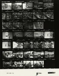 | Keywords: Ford B1760 NLGRF photo contact sheet (1976-10-09)(Gerald Ford Library).jpg White House Photographic Office WHPO is housed at the Gerald R Ford Presidential Library a branch of the National Archives and Records Administration NARA <br/><br/> This file is a 200 dpi photo contact sheet having images from roll of film B1760 of the August 9 1974 - January 20 1977 Gerald R Ford White House Photographic Office Series A0001-A9999 and B0001-B2886 photographs <br/><br/> The date on the photo contact sheet is the date the roll of film was processed not necessarily the date the photographs were taken See table below for additional details 1976-10-09 Gerald R Ford Presidential Library Image http //www fordlibrarymuseum gov/library/whphotos/B1760_NLGRF jpg B1760_NLGRF jpg from http //www fordlibrarymuseum gov/library/whphotos/19761009whpo pdf White House Photographs October 9 1976 of the http //www fordlibrarymuseum gov/Library/whphotos/whpo asp White House Photographic Collection page White House Photographic Office WHPO <br/> Creator David Hume Kennerly PD-USGov Institution Institution Gerald R Ford Presidential Library Table wikitable sortable + Photo contact sheet B1760 U S President Ford Administration Gerald R Ford Library Frame s Tone Subject proper Subject generic Names Geographic Location Photographer Date - 1A-14A BW Campaign Trip to Texas - Parade to Open the Texas State Fair - Governor of Texas GRF and Briscoe standing in limousine sun roof waving to crowd; agents flanking vehicle; various angles and distances GRF Gov Briscoe; Crowd; Secret Service Dallas TX Downtown Street Kennerly 1976-10-09 - 15A BW Kennerly 1976-10-09 - 16A BW Campaign Trip to Texas - Opening of the Texas State Fair holding large briefcase standing behind Please Keep Horses Off Grass sign Cheney Dallas TX Texas State Fairgrounds Kennerly 1976-10-09 - 17A-21A BW Campaign Trip to Texas - Opening of the Texas State Fair looking at Longhorn Cattle horns and photos mounted on wall; seated at table below horns talking writing in last 2 frames GRF Dallas TX Texas State Fairgrounds - Pan American Lounge Kennerly 1976-10-09 - 22A BW Campaign Trip to Texas - Opening of the Texas State Fair Cheney looking back toward camera; others walking past booths Cheney Others Dallas TX Texas State Fairgrounds - Midway Kennerly 1976-10-09 - 23A-25A BW Campaign Trip to Texas - Opening of the Texas State Fair shooting machine gun in shooting gallery Cheney Dallas TX Texas State Fairgrounds - Midway Kennerly 1976-10-09 - 26A-34A BW Campaign Trip to Texas - Opening of the Texas State Fair riding in Dodge'Em Cars Bumper Cars ; various angles and distances; all not in every frame; Channock on left of frame Cheney Foster Channock Penny Others Dallas TX Texas State Fairgrounds - Midway Kennerly 1976-10-09 Gerald R Ford Presidential Library and Museum-cooperation PD-USGov Contact sheets by the Ford White House October 1976 Photographs by David Hume Kennerly from 1976 |