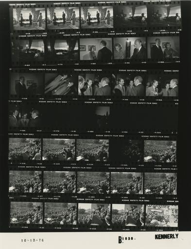 Keywords: Ford B1838 NLGRF photo contact sheet (1976-10-13)(Gerald Ford Library).jpg White House Photographic Office WHPO is housed at the Gerald R Ford Presidential Library a branch of the National Archives and Records Administration NARA <br/><br/> This file is a 200 dpi photo contact sheet having images from roll of film B1838 of the August 9 1974 - January 20 1977 Gerald R Ford White House Photographic Office Series A0001-A9999 and B0001-B2886 photographs <br/><br/> The date on the photo contact sheet is the date the roll of film was processed not necessarily the date the photographs were taken See table below for additional details 1976-10-13 Gerald R Ford Presidential Library Image http //www fordlibrarymuseum gov/library/whphotos/B1838_NLGRF jpg B1838_NLGRF jpg from http //www fordlibrarymuseum gov/library/whphotos/19761013whpo pdf White House Photographs October 13 1976 of the http //www fordlibrarymuseum gov/Library/whphotos/whpo asp White House Photographic Collection page White House Photographic Office WHPO <br/> Creator David Hume Kennerly PD-USGov Institution Institution Gerald R Ford Presidential Library Table wikitable sortable + Photo contact sheet B1838 U S President Ford Administration Gerald R Ford Library Frame s Tone Subject proper Subject generic Names Geographic Location Photographer Date - 1A-3A BW Campaign Trip to New York standing talking GRF Nessen Unidentified Man New York NY New York Hilton Hotel President's Suite Kennerly 1976-10-13 - 4A-7A BW Campaign Trip to New York - Prior to Interview with ABC News Correspondent GRF seated on sofa in all frames; Nessen standing leaning on TV and stand; seated in last frame GRF Nessen New York NY New York Hilton Hotel President's Suite Kennerly 1976-10-13 - 8A-11A BW Campaign Trip to New York - Interview with ABC News Correspondent standing talking; some motion; head and shoulder portraits GRF Barbara Walters New York NY New York Hilton Hotel - Room 3826 Kennerly 1976-10-13 - 12A BW Campaign Trip to New York standing; photo taken accidentally men at 45 degree angle Two Unidentified Men New York NY New York Hilton Hotel Kennerly 1976-10-13 - 13A-16A BW Campaign Trip to New York standing talking greeting handshaking; all not in every frame GRF Unidentified Men New York NY New York Hilton Hotel Kennerly 1976-10-13 - 17A-20A BW Kennerly 1976-10-13 - 21A-35A BW Campaign Trip to New York; Campaign Rally in Yonkers - Yonkers New York GRF at lectern speaking; crowd on left of frame; taken from left of GRF; last frame taken from front; various distances GRF Sens Javits Buckley; Rosenbaum Mayor Martinelli Malcolm Wilson J O'Rourke Platform Guests; Crowd Yonkers NY Yonkers City Hall - Outside Kennerly 1976-10-13 Gerald R Ford Presidential Library and Museum-cooperation PD-USGov Contact sheets by the Ford White House October 1976 Photographs by David Hume Kennerly from 1976 |