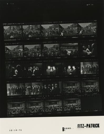 | Keywords: Ford B1848 NLGRF photo contact sheet (1976-10-12)(Gerald Ford Library).jpg White House Photographic Office WHPO is housed at the Gerald R Ford Presidential Library a branch of the National Archives and Records Administration NARA <br/><br/> This file is a 200 dpi photo contact sheet having images from roll of film B1848 of the August 9 1974 - January 20 1977 Gerald R Ford White House Photographic Office Series A0001-A9999 and B0001-B2886 photographs <br/><br/> The date on the photo contact sheet is the date the roll of film was processed not necessarily the date the photographs were taken See table below for additional details 1976-10-12 Gerald R Ford Presidential Library Image http //www fordlibrarymuseum gov/library/whphotos/B1848_NLGRF jpg B1848_NLGRF jpg from http //www fordlibrarymuseum gov/library/whphotos/19761012whpo pdf White House Photographs October 12 1976 of the http //www fordlibrarymuseum gov/Library/whphotos/whpo asp White House Photographic Collection page White House Photographic Office WHPO - Fitz-Patrick PD-USGov Institution Institution Gerald R Ford Presidential Library Table wikitable sortable + Photo contact sheet B1848 U S President Ford Administration Gerald R Ford Library Frame s Tone Subject proper Subject generic Names Geographic Location Photographer Date - 4-11 BW Campaign Trip to New York - Motorcade through Brooklyn Borough Park Bay Ridge GRF and Buckley standing through roof of limousine waving; GRF using microphone; agents walking alongside; crowd in background; various angles and distances GRF Sens Buckley Javits Secret Service Crowd Brooklyn NY Street Fitz-Patrick 1976-10-12 - 12 BW Campaign Trip to New York - Meeting with New York Media Executives seated around table; all not in frame GRF W Kerby W Phillips L Tanzer R Davidson J McManus P Derow E Kosner W Attwood D Laventhol J Oakes S Topping D Schiff J Wechsler W James M O;Neill J Hughes E Foell L Goldenson Others Cheney Nessen Juddah Sommer New York NY New York Hilton Hotel - Beckman Room Fitz-Patrick 1976-10-12 - 13-17 BW Campaign Trip to New York - Prior to New York Salute to the President Dinner greeting handshaking standing talking; all not in every frame; formal wear GRF Others New York NY New York Hilton Hotel Fitz-Patrick 1976-10-12 - 18-21 BW Campaign Trip to New York - Prior to New York Salute to the President Dinner standing talking posing in 1st three frames; all not in last frame; formal wear GRF Rockefeller Others New York NY New York Hilton Hotel Fitz-Patrick 1976-10-12 - 22-27 BW Campaign Trip to New York - New York Salute to the President Dinner GRF at lectern speaking; all not in frames; long shots from back of room; formal wear GRF Rockefeller Rosenbaum Platform Guests Others New York NY New York Hilton Hotel - Mercury Ballroom Fitz-Patrick 1976-10-12 Gerald R Ford Presidential Library and Museum-cooperation PD-USGov Contact sheets by the Ford White House October 1976 |