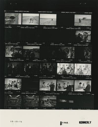 | Keywords: Ford B1882 NLGRF photo contact sheet (1976-10-15)(Gerald Ford Library).jpg White House Photographic Office WHPO is housed at the Gerald R Ford Presidential Library a branch of the National Archives and Records Administration NARA <br/><br/> This file is a 200 dpi photo contact sheet having images from roll of film B1882 of the August 9 1974 - January 20 1977 Gerald R Ford White House Photographic Office Series A0001-A9999 and B0001-B2886 photographs <br/><br/> The date on the photo contact sheet is the date the roll of film was processed not necessarily the date the photographs were taken See table below for additional details 1976-10-15 Gerald R Ford Presidential Library Image http //www fordlibrarymuseum gov/library/whphotos/B1882_NLGRF jpg B1882_NLGRF jpg from http //www fordlibrarymuseum gov/library/whphotos/19761015whpo pdf White House Photographs October 15 1976 of the http //www fordlibrarymuseum gov/Library/whphotos/whpo asp White House Photographic Collection page White House Photographic Office WHPO <br/> Creator David Hume Kennerly PD-USGov Institution Institution Gerald R Ford Presidential Library Table wikitable sortable + Photo contact sheet B1882 U S President Ford Administration Gerald R Ford Library Frame s Tone Subject proper Subject generic Names Geographic Location Photographer Date - 2-6 BW Campaign Trip to Iowa; Tour of Harvesting Operations at King Farm - Boone County Iowa walking talking in field; backs to camera; moving away from camera; frame 5 blank GRF Marshall King Boone County IA Marshall P King Farm Kennerly 1976-10-15 - 7-10 BW Kennerly 1976-10-15 - 11-12 BW Campaign Trip to Iowa; Tour of Harvesting Operations at King Farm - Boone County Iowa greeting handshaking near barn GRF Alice Mae King Boone County IA Marshall P King Farm Kennerly 1976-10-15 - 13 BW Campaign Trip to Iowa; Tour of King Farm - Boone County Iowa standing at corral fence backs to camera looking at cattle GRF Marshall King Unidentified Woman Boone County IA Marshall P King Farm Kennerly 1976-10-15 - 14-16 BW Campaign Trip to Iowa; Tour of King Farm - Boone County Iowa greeting handshaking talking; all not in every frame GRF Others Boone County IA Marshall P King Farm Kennerly 1976-10-15 - 17-18 BW Campaign Trip to Iowa; Prior to Lunch at King Farm - Boone County Iowa standing talking GRF Alice Mae King Sec Knebel Boone County IA Marshall P King Farm - Farmhouse Parlor Kennerly 1976-10-15 - 19-22 BW Campaign Trip to Iowa; Lunch at King Farm - Boone County Iowa around table; taking chairs in 1st frame; seated heads bowed for prayer in last 2 frames; all not in frames GRF Marshall King Alice Mae King Jon Neil King Sec Knebel Gov Mrs Ray Boone County IA Marshall P King Farm - Farmhouse Dining Room Kennerly 1976-10-15 - 23 BW Kennerly 1976-10-15 - 24-26 BW Campaign Trip to Iowa; Tour of Iowa State University College of Veterinary Medicine - Ames Iowa greeting handshaking; women behind counter GRF Three Unidentified Women Ames IA Iowa State University - College of Veterinary Medicine - Lobby Kennerly 1976-10-15 - 27-29 BW Campaign Trip to Iowa; Remarks to Iowa Farm Forum at Iowa State University College of Veterinary Medicine -Ames Iowa GRF on stage behind lectern; others seated in foreground; long shots from back of room; all not in frames GRF R Elijah R Christensen C Mohr Baster-Freeze H Parker L Peterson K Olson E Hoyly R McGregor J Montgomery D Reynolds D Simonsen J Lundsgaard O Kalsem D Nelson R Doolittle J Greig F Homberger Others Ames IA Iowa State University - College of Veterinary Medicine - Lecture Room Kennerly 1976-10-15 Gerald R Ford Presidential Library and Museum-cooperation PD-USGov Contact sheets by the Ford White House October 1976 Photographs by David Hume Kennerly from 1976 |