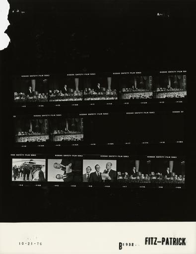 Keywords: Ford B1932 NLGRF photo contact sheet (1976-10-21)(Gerald Ford Library).jpg White House Photographic Office WHPO is housed at the Gerald R Ford Presidential Library a branch of the National Archives and Records Administration NARA <br/><br/> This file is a 200 dpi photo contact sheet having images from roll of film B1932 of the August 9 1974 - January 20 1977 Gerald R Ford White House Photographic Office Series A0001-A9999 and B0001-B2886 photographs <br/><br/> The date on the photo contact sheet is the date the roll of film was processed not necessarily the date the photographs were taken See table below for additional details 1976-10-21 Gerald R Ford Presidential Library Image http //www fordlibrarymuseum gov/library/whphotos/B1932_NLGRF jpg B1932_NLGRF jpg from http //www fordlibrarymuseum gov/library/whphotos/19761021whpo pdf White House Photographs October 21 1976 of the http //www fordlibrarymuseum gov/Library/whphotos/whpo asp White House Photographic Collection page White House Photographic Office WHPO - Fitz-Patrick PD-USGov Institution Institution Gerald R Ford Presidential Library Table wikitable sortable + Photo contact sheet B1932 U S President Ford Administration Gerald R Ford Library Frame s Tone Subject proper Subject generic Names Geographic Location Photographer Date - 4 BW Prior to Departure for New York City GRF and other walking from Marine One to steps of Air Force One; Secret Service in formal wear; helicopter in background GRF Cheney Secret Service Military Andrews Air Force Base MD Andrews Air Force Base Fitz-Patrick 1976-10-21 - 5-6 BW Arrival in New York City - Question and Answer Session with Members of Media GRF speaking into microphone; holding papers GRF Others New York City NY John F Kennedy JFK International Airport Fitz-Patrick 1976-10-21 - 7-15 BW Trip to New York City -Alfred E Smith Dinner GRF standing at lectern speaking; others seated in background; various distances; taken from back of room; formal wear GRF J Miller V Learson T Watson W Hearst J Patterson R Smith B Abplanalp Lt Gen S Berry W Annenberg Mrs D Mac Arthur W A Harriman A Levitt E Bobst R Moses D Moyhihan K Gibson D Edelstein A Beame H Carey Buckley Luce Others New York City NY Waldorf Astoria Hotel - Grand Ballroom Fitz-Patrick 1976-10-21 Gerald R Ford Presidential Library and Museum-cooperation PD-USGov Contact sheets by the Ford White House October 1976 |