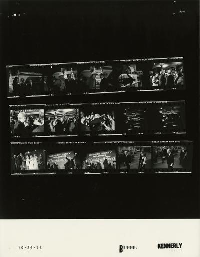 | Keywords: Ford B1998 NLGRF photo contact sheet (1976-10-24)(Gerald Ford Library).jpg White House Photographic Office WHPO is housed at the Gerald R Ford Presidential Library a branch of the National Archives and Records Administration NARA <br/><br/> This file is a 200 dpi photo contact sheet having images from roll of film B1998 of the August 9 1974 - January 20 1977 Gerald R Ford White House Photographic Office Series A0001-A9999 and B0001-B2886 photographs <br/><br/> The date on the photo contact sheet is the date the roll of film was processed not necessarily the date the photographs were taken See table below for additional details 1976-10-24 Gerald R Ford Presidential Library Image http //www fordlibrarymuseum gov/library/whphotos/B1998_NLGRF jpg B1998_NLGRF jpg from http //www fordlibrarymuseum gov/library/whphotos/19761024whpo pdf White House Photographs October 24 1976 of the http //www fordlibrarymuseum gov/Library/whphotos/whpo asp White House Photographic Collection page White House Photographic Office WHPO <br/> Creator David Hume Kennerly PD-USGov Institution Institution Gerald R Ford Presidential Library Table wikitable sortable + Photo contact sheet B1998 U S President Ford Administration Gerald R Ford Library Frame s Tone Subject proper Subject generic Names Geographic Location Photographer Date - 5 BW Campaign Trip to California; Prior to Departure for San Diego California -Hollywood California GRF waving at base of steps to Air Force One GRF Others Hollywood CA Hollywood Burbank Airport Kennerly 1976-10-24 - 6-7 BW Campaign Trip to California; Prior to Departure for San Diego California -Hollywood California standing talking at base of steps to Air Force One; Steve wearing jeans and cowboy hat GRF Steve Ford Hollywood CA Hollywood Burbank Airport Kennerly 1976-10-24 - 8 BW Campaign Trip to California; Prior to Departure for San Diego California -Hollywood California walking up steps to Air Force One; back to camera GRF Hollywood CA Hollywood Burbank Airport Kennerly 1976-10-24 - 9-14 BW Campaign Trip to California - Arrival in San Diego greeting handshaking; various angles and distances; all not in every frame GRF Others San Diego CA Lindbergh Field Kennerly 1976-10-24 - 15 BW Campaign Trip to California; Rally at the Grossmont Shopping Center - La Mesa California greeting handshaking on stage; all not in frame GRF Sens Stull Schrade; Reps Burgener Wilson Mayors Fordem Wilson; V Farmer R Thornberg J Grant Rev Mayo A Anderson M Mazur Others La Mesa CA Grossmont Shopping Center -Broadway Department Store Kennerly 1976-10-24 - 16-17 BW Campaign Trip to California; Rally at the Grossmont Shopping Center - La Mesa California GRF near lectern; large San Diego County Welcomes President Ford sign in background GRF Others La Mesa CA Grossmont Shopping Center -Broadway Department Store Kennerly 1976-10-24 - 18-19 BW Campaign Trip to California - Arrival at Little America Westgate Hotel standing talking near limousine; all not in both frames GRF Others San Diego CA Little America Westgate Hotel - Parking Garage Kennerly 1976-10-24 Gerald R Ford Presidential Library and Museum-cooperation PD-USGov Contact sheets by the Ford White House October 1976 Photographs by David Hume Kennerly from 1976 |