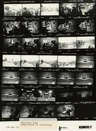 | Keywords: Ford B2001 NLGRF photo contact sheet (1976-10-24)(Gerald Ford Library).jpg White House Photographic Office WHPO is housed at the Gerald R Ford Presidential Library a branch of the National Archives and Records Administration NARA <br/><br/> This file is a 200 dpi photo contact sheet having images from roll of film B2001 of the August 9 1974 - January 20 1977 Gerald R Ford White House Photographic Office Series A0001-A9999 and B0001-B2886 photographs <br/><br/> The date on the photo contact sheet is the date the roll of film was processed not necessarily the date the photographs were taken See table below for additional details 1976-10-24 Gerald R Ford Presidential Library Image http //www fordlibrarymuseum gov/library/whphotos/B2001_NLGRF jpg B2001_NLGRF jpg from http //www fordlibrarymuseum gov/library/whphotos/19761024whpo pdf White House Photographs October 24 1976 of the http //www fordlibrarymuseum gov/Library/whphotos/whpo asp White House Photographic Collection page White House Photographic Office WHPO <br/> Creator David Hume Kennerly PD-USGov Institution Institution Gerald R Ford Presidential Library Table wikitable sortable + Photo contact sheet B2001 U S President Ford Administration Gerald R Ford Library Frame s Tone Subject proper Subject generic Names Geographic Location Photographer Date - 2-4 BW Campaign Trip to California; Following Tour of San Gabriel Mission Church -San Gabriel California GRF standing in limousine waving; mission in background GRF Secret Service Crowd San Gabriel CA San Gabriel Mission Church - Outside Kennerly 1976-10-24 - 5-11 BW Campaign Trip to California - Reception for California State PFC Staff and Volunteers speaking at lectern; only head visible; taken from lower elevation GRF Pasadena CA Huntington-Sheraton Inn - Viennese Room Kennerly 1976-10-24 - 12-14 BW Campaign Trip to California seated ariund breakfast table; eating talking GRF Cheney Joe Garagiola Unidentified Man Pasadena CA Huntington-Sheraton Inn - Porteous Cottage Kennerly 1976-10-24 - 15-19 BW Campaign Trip to California; Campaign Rally in Fountain Valley; Actor - Fountain Valley California GRF at lectern; others seated in foreground; crowd in background GRF John Wayne; Platform Guests Fountain Valley CA Fountain Valley Recreation Center Kennerly 1976-10-24 - 20 BW Campaign Trip to California; Following Campaign Rally in Fountain Valley; Actor -Fountain Valley California motorcade pulling away Crowd Secret Service Fountain Valley CA Fountain Valley Recreation Center Kennerly 1976-10-24 - 21-29 BW Campaign Trip to California - Interview with Joe Garagiola Edith Green and Steve Ford seated around coffee table; various angles and distances GRF Joe Garagiola Edith Green Steve Ford Los Angeles CA KABC-TV Studio Kennerly 1976-10-24 - 30-33 BW Campaign Trip to California - Interview with Joe Garagiola Edith Green and Steve Ford -Columnist embracing offstage Rona Barrett Unidentified Man Los Angeles CA KABC-TV Studio Kennerly 1976-10-24 - 34-35 BW Campaign Trip to California - Following Interview with Joe Garagiola Edith Green and Steve Ford seated around coffee table; watching television not shown GRF Steve Ford Joe Garagiola Others Los Angeles CA KABC-TV Studio -Green Room Kennerly 1976-10-24 Gerald R Ford Presidential Library and Museum-cooperation PD-USGov Contact sheets by the Ford White House October 1976 Photographs by David Hume Kennerly from 1976 |