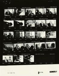 | Keywords: Ford B2179 NLGRF photo contact sheet (1976-11-02)(Gerald Ford Library).jpg White House Photographic Office WHPO is housed at the Gerald R Ford Presidential Library a branch of the National Archives and Records Administration NARA <br/><br/> This file is a 200 dpi photo contact sheet having images from roll of film B2179 of the August 9 1974 - January 20 1977 Gerald R Ford White House Photographic Office Series A0001-A9999 and B0001-B2886 photographs <br/><br/> The date on the photo contact sheet is the date the roll of film was processed not necessarily the date the photographs were taken See table below for additional details 1976-11-02 Gerald R Ford Presidential Library Image http //www fordlibrarymuseum gov/library/whphotos/B2179_NLGRF jpg B2179_NLGRF jpg from http //www fordlibrarymuseum gov/library/whphotos/19761102whpo pdf White House Photographs November 2 1976 of the http //www fordlibrarymuseum gov/Library/whphotos/whpo asp White House Photographic Collection page White House Photographic Office WHPO <br/> Creator David Hume Kennerly PD-USGov Institution Institution Gerald R Ford Presidential Library Table wikitable sortable + Photo contact sheet B2179 U S President Ford Administration Gerald R Ford Library Frame s Tone Subject proper Subject generic Names Geographic Location Photographer Date - 2A-6A BW Election Night Activities GRF seated on sofa watching TV not seen and smoking pipe; Garagiola hand on chin in frame 4A only; close ups GRF Joe Garagiola Second Floor - West Sitting Room Kennerly 1976-11-02 - 7A-8A BW Election Night Activities standing talking on telephone; head and shoulders silhouette close up portrait GRF Second Floor - West Sitting Room Kennerly 1976-11-02 - 9A BW Election Night Activities standing talking; Javits in foreground; head and shoulder portrait GRF Sen Javits Second Floor - West Sitting Room Kennerly 1976-11-02 - 10A-12A BW Election Night Activities seated on sofa watching TV not seen ; GRF lighting pipe in last frame; Garagiola grimacing in 1st and 3rd frames; close ups GRF Joe Garagiola Second Floor - West Sitting Room Kennerly 1976-11-02 - 13A-17A BW Election Night Activities holding smoking pipe; glasses removed in last frame; various angles; close up portraits GRF Second Floor - West Sitting Room Kennerly 1976-11-02 - 18A-19A BW Election Night Activities seated leaning on hand on side of head; silhouette Teeter in foreground GRF Second Floor - West Sitting Room Kennerly 1976-11-02 - 20A-21A BW Election Night Activities GRF standing in center talking; others standing seated in circle; all not in frames Betty Ford Pearl Bailey Weidenfeld E Weidenfeld Pullen Parma Elizabeth Dole Mike Ford Clara Powell Susan Ford Beau Firth Nancy Gordon Others Second Floor - West Sitting Room Kennerly 1976-11-02 - 22A BW Election Night Activities standing somber expressions; Steve's right arm over GRF's shoulders GRF Steve Ford Second Floor - West Sitting Room Kennerly 1976-11-02 - 23A-24A BW Election Night Activities standing talking; GRF's right arm over Dole's shoulders in 1st frame GRF Dole Second Floor - West Sitting Room Kennerly 1976-11-02 Gerald R Ford Presidential Library and Museum-cooperation PD-USGov Contact sheets by the Ford White House November 1976 Photographs by David Hume Kennerly from 1976 |