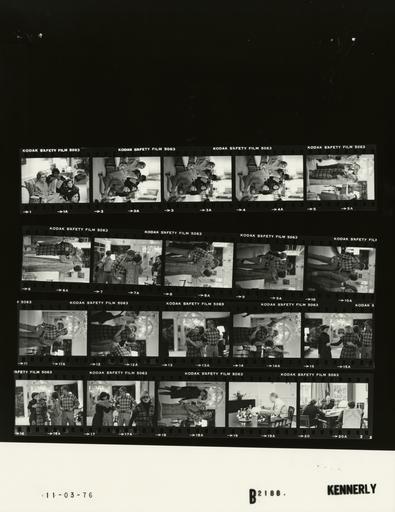 Keywords: Ford B2188 NLGRF photo contact sheet (1976-11-02)(Gerald Ford Library).jpg White House Photographic Office WHPO is housed at the Gerald R Ford Presidential Library a branch of the National Archives and Records Administration NARA <br/><br/> This file is a 200 dpi photo contact sheet having images from roll of film B2188 of the August 9 1974 - January 20 1977 Gerald R Ford White House Photographic Office Series A0001-A9999 and B0001-B2886 photographs <br/><br/> The date on the photo contact sheet is the date the roll of film was processed not necessarily the date the photographs were taken See table below for additional details 1976-11-02 Gerald R Ford Presidential Library Image http //www fordlibrarymuseum gov/library/whphotos/B2188_NLGRF jpg B2188_NLGRF jpg from http //www fordlibrarymuseum gov/library/whphotos/19761102whpo pdf White House Photographs November 2 1976 of the http //www fordlibrarymuseum gov/Library/whphotos/whpo asp White House Photographic Collection page White House Photographic Office WHPO <br/> Creator David Hume Kennerly PD-USGov Institution Institution Gerald R Ford Presidential Library Table wikitable sortable + Photo contact sheet B2188 U S President Ford Administration Gerald R Ford Library Frame s Tone Subject proper Subject generic Names Geographic Location Photographer Date - 1A-4A BW Election Night Activities seated staring at television not seen ; close ups Betty Ford Gayle Ford Pearl Bailey Pullen Second Floor - West Sitting Room Kennerly 1976-11-02 - 5A-18A BW Election Night Activities BF embracing family members individually and in groups; others in background; various angles and distances; all not in every frame Betty Ford Susan Ford Steve Ford Gayle Ford Others Second Floor - West Sitting Room Kennerly 1976-11-02 - 19A BW Breakfast on Morning After Presidential Election seated at table in bathrobe eating reading newspaper; close up GRF Second Floor - Family Dining Room Kennerly 1976-11-03 - 20A BW Meeting with President Ford Committee PFC Deputy Chairmen seated around desk talking GRF Teeter Cheney Oval Office Kennerly 1976-11-03 Gerald R Ford Presidential Library and Museum-cooperation PD-USGov Contact sheets by the Ford White House November 1976 Photographs by David Hume Kennerly from 1976 |