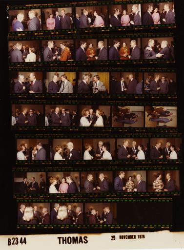 Keywords: Ford B2344 NLGRF photo contact sheet (1976-11-29)(Gerald Ford Library).jpg White House Photographic Office WHPO is housed at the Gerald R Ford Presidential Library a branch of the National Archives and Records Administration NARA <br/><br/> This file is a 200 dpi photo contact sheet having images from roll of film B2344 of the August 9 1974 - January 20 1977 Gerald R Ford White House Photographic Office Series A0001-A9999 and B0001-B2886 photographs <br/><br/> The date on the photo contact sheet is the date the roll of film was processed not necessarily the date the photographs were taken See table below for additional details 1976-11-29 Gerald R Ford Presidential Library Image http //www fordlibrarymuseum gov/library/whphotos/B2344_NLGRF jpg B2344_NLGRF jpg from http //www fordlibrarymuseum gov/library/whphotos/19761129whpo pdf White House Photographs November 29 1976 of the http //www fordlibrarymuseum gov/Library/whphotos/whpo asp White House Photographic Collection page White House Photographic Office WHPO - Thomas PD-USGov Institution Institution Gerald R Ford Presidential Library Table wikitable sortable + Photo contact sheet B2344 U S President Ford Administration Gerald R Ford Library Frame s Tone Subject proper Subject generic Names Geographic Location Photographer Date - 28 Color Reception for Republican Governors and Their Spouses -Governor and First Lady of Michigan standing talking Betty Ford Gov Helen Milliken State Dining Room Thomas 1976-11-29 - 29 Color Reception for Republican Governors and Their Spouses standing talking Unidentified Man Friedersdorf State Dining Room Thomas 1976-11-29 - 30-31 Color Reception for Republican Governors and Their Spouses standing talking; man not in 2nd frame GRF Unidentified Man Woman State Dining Room Thomas 1976-11-29 - 32-34 Color Reception for Republican Governors and Their Spouses standing talking; woman's back to camera long blonde hair in 1st 2 frames; facing camera in background in last frame GRF Two Unidentified Men Woman State Dining Room Thomas 1976-11-29 - 2 Color Reception for Republican Governors and Their Spouses standing talking GRF's left hand on man's right shoulder; backs to camera GRF Unidentified Man State Dining Room Thomas 1976-11-29 - 3 Color Reception for Republican Governors and Their Spouses standing posing GRF Unidentified Man Woman State Dining Room Thomas 1976-11-29 - 4 Color Reception for Republican Governors and Their Spouses -First Lady of Michigan greeting handshaking smiling GRF Helen Milliken State Dining Room Thomas 1976-11-29 - 5-6 Color Reception for Republican Governors and Their Spouses -Governor and First Lady of Michigan greeting handshaking smiling talking GRF Gov William Helen Milliken State Dining Room Thomas 1976-11-29 - 7 Color Reception for Republican Governors and Their Spouses standing talking; GRF's back to camera GRF Others State Dining Room Thomas 1976-11-29 - 8-10 Color Reception for Republican Governors and Their Spouses - Governor and First Lady of Missouri greeting handshaking smiling talking GRF Gov Christopher Carolyn Bond State Dining Room Thomas 1976-11-29 - 11-12 Color Reception for Republican Governors and Their Spouses -Former Governor of Michigan greeting embracing smiling talking GRF George Romney State Dining Room Thomas 1976-11-29 - 13-14 Color Reception for Republican Governors and Their Spouses -Former Governor of Michigan greeting handshaking smiling talking O'Donnell George Romney State Dining Room Thomas 1976-11-29 - 15 Color Reception for Republican Governors and Their Spouses standing talking Baroody Unidentified Man State Dining Room Thomas 1976-11-29 - 16-18 Color Reception for Republican Governors and Their Spouses greeting handshaking smiling talking posing GRF Unidentified Man State Dining Room Thomas 1976-11-29 - 19 Color Reception for Republican Governors and Their Spouses - Former Governor and First Lady of Michigan BF and Lenore Romney in foreground talking; George Romney in center background listening Betty Ford George Lenore Romney State Dining Room Thomas 1976-11-29 - 20-21 Color Reception for Republican Governors and Their Spouses talking; Buchen seated others stabding in doorway Buchen Gov Ray Unidentified Man State Dining Room Thomas 1976-11-29 - 22 Color Reception for Republican Governors and Their Spouses -Former First Lady of Michigan standing talking; man's back to camera GRF Betty Ford Lenore Romney Unidentified Man State Dining Room Thomas 1976-11-29 - 23-26 Color Reception for Republican Governors and Their Spouses standing talking; all not in every frame; only man in all frames GRF Betty Ford Unidentified Man Woman State Dining Room Thomas 1976-11-29 - 27 Color Reception for Republican Governors and Their Spouses -Governor of Kansas standing talking; Zarb smoking pipe; fireplace in background Zarb Gov Bennett State Dining Room Thomas 1976-11-29 Gerald R Ford Presidential Library and Museum-cooperation PD-USGov Contact sheets by the Ford White House November 1976 |