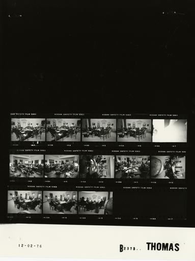 Keywords: Ford B2373 NLGRF photo contact sheet (1976-11-30)(Gerald Ford Library).jpg White House Photographic Office WHPO is housed at the Gerald R Ford Presidential Library a branch of the National Archives and Records Administration NARA <br/><br/> This file is a 200 dpi photo contact sheet having images from roll of film B2373 of the August 9 1974 - January 20 1977 Gerald R Ford White House Photographic Office Series A0001-A9999 and B0001-B2886 photographs <br/><br/> The date on the photo contact sheet is the date the roll of film was processed not necessarily the date the photographs were taken See table below for additional details 1976-11-30 Gerald R Ford Presidential Library Image http //www fordlibrarymuseum gov/library/whphotos/B2373_NLGRF jpg B2373_NLGRF jpg from http //www fordlibrarymuseum gov/library/whphotos/19761130whpo pdf White House Photographs November 30 1976 of the http //www fordlibrarymuseum gov/Library/whphotos/whpo asp White House Photographic Collection page White House Photographic Office WHPO - Thomas PD-USGov Institution Institution Gerald R Ford Presidential Library Table wikitable sortable + Photo contact sheet B2373 U S President Ford Administration Gerald R Ford Library Frame s Tone Subject proper Subject generic Names Geographic Location Photographer Date - 3-6 BW Meeting with Under Secretary of the Treasury for Monetary Affairs seated around desk talking; various angles and distances GRF Cheney Scowcroft Greenspan Edward Yeo III Oval Office Thomas 1976-11-30 - 7 BW Thomas 1976-11-30 - 8-11 BW Meeting by Unidentified Group Crowded around table and chairs along wall; overhead projector and screen near fireplace; various angles and distances; all not in frames Unidentified Group Roosevelt Room Thomas 1976-12-02 - 12-15 BW Meeting with Chairman of the Commission on Executive Legislative and Judicial Salaries seated around desk; various angles and distances GRF Peter Peterson Oval Office Thomas 1976-12-02 Gerald R Ford Presidential Library and Museum-cooperation PD-USGov Contact sheets by the Ford White House November 1976 |