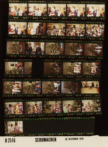 | Keywords: Ford B2516 NLGRF photo contact sheet (1976-12-14)(Gerald Ford Library).jpg White House Photographic Office WHPO is housed at the Gerald R Ford Presidential Library a branch of the National Archives and Records Administration NARA <br/><br/> This file is a 200 dpi photo contact sheet having images from roll of film B2516 of the August 9 1974 - January 20 1977 Gerald R Ford White House Photographic Office Series A0001-A9999 and B0001-B2886 photographs <br/><br/> The date on the photo contact sheet is the date the roll of film was processed not necessarily the date the photographs were taken See table below for additional details 1976-12-14 Gerald R Ford Presidential Library Image http //www fordlibrarymuseum gov/library/whphotos/B2516_NLGRF jpg B2516_NLGRF jpg from http //www fordlibrarymuseum gov/library/whphotos/19761214whpo pdf White House Photographs December 14 1976 of the http //www fordlibrarymuseum gov/Library/whphotos/whpo asp White House Photographic Collection page White House Photographic Office WHPO - Schumacher PD-USGov Institution Institution Gerald R Ford Presidential Library Table wikitable sortable + Photo contact sheet B2516 U S President Ford Administration Gerald R Ford Library Frame s Tone Subject proper Subject generic Names Geographic Location Photographer Date - 1A-2A Color Prior to Diplomatic Children's Christmas Party standing talking Betty Ford Susan Ford Santa Claus Bill Nicholson Maria Downs State Dining Room Schumacher 1976-12-14 - 3A-6A Color Prior to Diplomatic Children's Christmas Party; White House Maitre'd standing posing smiling; ; Ficklin wearing balloon hat; formal wear Betty Ford Susan Ford Santa Claus Bill Nicholson John Ficklin State Dining Room Schumacher 1976-12-14 - 7A Color Prior to Diplomatic Children's Christmas Party; Sesame Street Character greeting handshaking Betty Ford Susan Ford Susan Loretta Long State Dining Room Schumacher 1976-12-14 - 8A-10A Color Diplomatic Children's Christmas Party mingling; many waving long balloons; some children in native costumes; all not in frame Children Clowns East Room Schumacher 1976-12-14 - 11A Color White House Christmas Tree White House Christmas Tree Blue Room Schumacher 1976-12-14 - 12A Color Diplomatic Children's Christmas Party looking at Christmas Decorations Military Aides Children Cross Hall Schumacher 1976-12-14 - 13A-24A Color Diplomatic Children's Christmas Party walking around White House Christmas Tree; some children in native costumes; all not in frames; 5th frame damaged Childern Blue Room Schumacher 1976-12-14 - 25A Color Diplomatic Children's Christmas Party standing; one butler bending picking up object off floor Military Aides; White House Ushers Cross Hall Schumacher 1976-12-14 - 26A-31A Color Following Diplomatic Children's Christmas Party; Clowns from Baltimore Social Security Administration standing looking at White House Christmas Tree; all not in every frame; posing in last frame Betty Ford; Clowns from Baltimore Social Security Administration Blue Room Schumacher 1976-12-14 Gerald R Ford Presidential Library and Museum-cooperation PD-USGov Contact sheets by the Ford White House December 1976 |