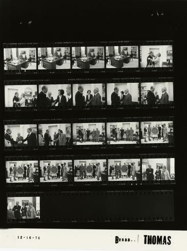 Keywords: Ford B2533 NLGRF photo contact sheet (1976-12-16)(Gerald Ford Library).jpg White House Photographic Office WHPO is housed at the Gerald R Ford Presidential Library a branch of the National Archives and Records Administration NARA <br/><br/> This file is a 200 dpi photo contact sheet having images from roll of film B2533 of the August 9 1974 - January 20 1977 Gerald R Ford White House Photographic Office Series A0001-A9999 and B0001-B2886 photographs <br/><br/> The date on the photo contact sheet is the date the roll of film was processed not necessarily the date the photographs were taken See table below for additional details 1976-12-16 Gerald R Ford Presidential Library Image http //www fordlibrarymuseum gov/library/whphotos/B2533_NLGRF jpg B2533_NLGRF jpg from http //www fordlibrarymuseum gov/library/whphotos/19761216whpo pdf White House Photographs December 16 1976 of the http //www fordlibrarymuseum gov/Library/whphotos/whpo asp White House Photographic Collection page White House Photographic Office WHPO - Thomas PD-USGov Institution Institution Gerald R Ford Presidential Library Table wikitable sortable + Photo contact sheet B2533 U S President Ford Administration Gerald R Ford Library Frame s Tone Subject proper Subject generic Names Geographic Location Photographer Date - 2A-5A BW Meeting with United States Senator and Representative from Michigan MI GRF and Ruppe seated at desk; Griffin standing to left of GRF GRF Sen Griffin Rep Ruppe Oval Office Thomas 1976-12-16 - 6A-7A BW Prior to Presentation by Representatives of a Frisian Society greeting embracing GRF Unidentified Woman either Dorothy Fridsma Ella Weed Mary Beth Rosenberg Oval Office Thomas 1976-12-16 - 8A-13A BW Prior to Presentation by Representatives of a Frisian Society greeting handshaking standing talking; all not in every frame GRF Bernard Dorothy Charles Fridsma; Ella Weed Mary Beth Rosenberg Christian Duvekot Oval Office Thomas 1976-12-16 - 14A-15A BW Prior to Presentation by Representatives of a Frisian Society standing posing GRF Bernard Dorothy Charles Fridsma; Ella Weed Mary Beth Rosenberg Christian Duvekot Oval Office Thomas 1976-12-16 - 16A-20A BW Presentation by Representatives of a Frisian Society standing posing behind large round bronze sculpture GRF Bernard Dorothy Charles Fridsma; Ella Weed Mary Beth Rosenberg Christian Duvekot Oval Office Thomas 1976-12-16 - 21A-22A BW Presentation by Representatives of a Frisian Society standing talking laughing; GRF's arms folded GRF Two Unidentified women either Dorothy Fridsma Ella Weed Mary Beth Rosenberg Oval Office Thomas 1976-12-16 Gerald R Ford Presidential Library and Museum-cooperation PD-USGov Contact sheets by the Ford White House December 1976 |