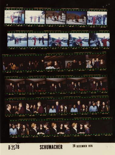 | Keywords: Ford B2578 NLGRF photo contact sheet (1976-12-20)(Gerald Ford Library).jpg White House Photographic Office WHPO is housed at the Gerald R Ford Presidential Library a branch of the National Archives and Records Administration NARA <br/><br/> This file is a 200 dpi photo contact sheet having images from roll of film B2578 of the August 9 1974 - January 20 1977 Gerald R Ford White House Photographic Office Series A0001-A9999 and B0001-B2886 photographs <br/><br/> The date on the photo contact sheet is the date the roll of film was processed not necessarily the date the photographs were taken See table below for additional details 1976-12-20 Gerald R Ford Presidential Library Image http //www fordlibrarymuseum gov/library/whphotos/B2578_NLGRF jpg B2578_NLGRF jpg from http //www fordlibrarymuseum gov/library/whphotos/19761220whpo pdf White House Photographs December 20 1976 of the http //www fordlibrarymuseum gov/Library/whphotos/whpo asp White House Photographic Collection page White House Photographic Office WHPO - Schumacher PD-USGov Institution Institution Gerald R Ford Presidential Library Table wikitable sortable + Photo contact sheet B2578 U S President Ford Administration Gerald R Ford Library Frame s Tone Subject proper Subject generic Names Geographic Location Photographer Date - 1-2 Color Trip to Colorado - Christmas and Skiing Vacation in Vail CO walking talking carrying skis GRF Two Unidentified Men Vail CO Ski Lodge - Outside Schumacher 1976-12-20 - 3-4 Color Trip to Colorado - Christmas and Skiing Vacation in Vail CO GRF standing in skis; man bending to fasten GRF skis to his boots GRF Secret Service Others Vail CO Vail Mountain Schumacher 1976-12-20 - 5 Color Trip to Colorado - Christmas and Skiing Vacation in Vail CO GRF walking past spectators talking; some people taking photographs GRF Crowd Vail CO Vail Mountain Schumacher 1976-12-20 - 6-10 Color Trip to Colorado - Christmas and Skiing Vacation in Vail CO walking talking carrying skis; various angles and distances; all not in every frame GRF Secret Service Others Vail CO Vail Mountain Schumacher 1976-12-20 - 11-12 Color Trip to Colorado - Christmas Skiing Vacation in Vail CO - Reception Hosted by Mr Mrs Fitzhugh Scott greeting handshaking; GRF removing wolfskin fur coat; all not in both frames GRF Betty Ford Others Vail CO Sheika's Discotheque Schumacher 1976-12-20 - 13 Color Trip to Colorado - Christmas Skiing Vacation in Vail CO - Reception Hosted by Mr Mrs Fitzhugh Scott greeting handshaking; BF wearing fur coat Betty Ford Unidentified Couple Vail CO Sheika's Discotheque Schumacher 1976-12-20 - 14 Color Trip to Colorado - Christmas Skiing Vacation in Vail CO - Reception Hosted by Mr Mrs Fitzhugh Scott standing posing smiling GRF Betty Ford Unidentified Woman Vail CO Sheika's Discotheque Schumacher 1976-12-20 - 15 Color Trip to Colorado - Christmas Skiing Vacation in Vail CO - Reception Hosted by Mr Mrs Fitzhugh Scott standing posing smiling GRF Betty Ford Unidentified Woman Unidentified Man Vail CO Sheika's Discotheque Schumacher 1976-12-20 - 16-20 Color Trip to Colorado - Christmas Skiing Vacation in Vail CO - Reception Hosted by Mr Mrs Fitzhugh Scott standing talking smiling laughing; long shots GRF Betty Ford Unidentified Man Vail CO Sheika's Discotheque Schumacher 1976-12-20 - 21-22 Color Trip to Colorado - Christmas Skiing Vacation in Vail CO - Reception Hosted by Mr Mrs Fitzhugh Scott standing talking smiling GRF Two Unidentified women Two Unidentified Men Vail CO Sheika's Discotheque Schumacher 1976-12-20 - 23-24 Color Trip to Colorado - Christmas Skiing Vacation in Vail CO - Reception Hosted by Mr Mrs Fitzhugh Scott standing posing smiling GRF Two Unidentified women Vail CO Sheika's Discotheque Schumacher 1976-12-20 - 25-26 Color Trip to Colorado - Christmas Skiing Vacation in Vail CO - Reception Hosted by Mr Mrs Fitzhugh Scott standing posing smiling Betty Ford Two Unidentified women Vail CO Sheika's Discotheque Schumacher 1976-12-20 - 27-29 Color Trip to Colorado - Christmas Skiing Vacation in Vail CO - Reception Hosted by Mr Mrs Fitzhugh Scott standing talking; BF in profile; close ups Betty Ford Two Unidentified women Vail CO Sheika's Discotheque Schumacher 1976-12-20 Gerald R Ford Presidential Library and Museum-cooperation PD-USGov Contact sheets by the Ford White House December 1976 Fur fashion in 1976 Mink clothing |