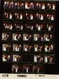 | Keywords: Ford B2709 NLGRF photo contact sheet (1977-01-07)(Gerald Ford Library).jpg White House Photographic Office WHPO is housed at the Gerald R Ford Presidential Library a branch of the National Archives and Records Administration NARA <br/><br/> This file is a 200 dpi photo contact sheet having images from roll of film B2709 of the August 9 1974 - January 20 1977 Gerald R Ford White House Photographic Office Series A0001-A9999 and B0001-B2886 photographs <br/><br/> The date on the photo contact sheet is the date the roll of film was processed not necessarily the date the photographs were taken See table below for additional details 1977-01-07 Gerald R Ford Presidential Library Image http //www fordlibrarymuseum gov/library/whphotos/B2709_NLGRF jpg B2709_NLGRF jpg from http //www fordlibrarymuseum gov/library/whphotos/19770107whpo pdf White House Photographs January 7 1977 of the http //www fordlibrarymuseum gov/Library/whphotos/whpo asp White House Photographic Collection page White House Photographic Office WHPO - Thomas PD-USGov Institution Institution Gerald R Ford Presidential Library Table wikitable sortable + Photo contact sheet B2709 U S President Ford Administration Gerald R Ford Library Frame s Tone Subject proper Subject generic Names Geographic Location Photographer Date - 5-6 Color Dinner Given by President Mrs Ford for the Chowder Marching Society S O S Members standing talking; formal wear Friedersdorf Two Unidentified Men Unidentified Woman Red Room Thomas 1977-01-07 - 7 Color Dinner Given by President Mrs Ford for the Chowder Marching Society S O S Members greeting handshaking standing talking; formal wear Betty Ford Unidentified Couple Red Room Thomas 1977-01-07 - 8-12 Color Dinner Given by President Mrs Ford for the Chowder Marching Society S O S Members standing talking; GRF holding an ice bucket with masonic symbols on it; formal wear GRF Betty Ford Rep Michel Red Room Thomas 1977-01-07 - 13-14 Color Dinner Given by President Mrs Ford for the Chowder Marching Society S O S Members standing talking; GRF holding inscribed metal cup; formal wear GRF Betty Ford Unidentified Man Red Room Thomas 1977-01-07 - 15-17 Color Dinner Given by President Mrs Ford for the Chowder Marching Society S O S Members standing behind framed painting of sailing ship; formal wear GRF Betty Ford Unidentified Couple Red Room Thomas 1977-01-07 - 18-19 Color Dinner Given by President Mrs Ford for the Chowder Marching Society S O S Members standing posing; formal wear GRF Betty Ford Rep Michel Red Room Thomas 1977-01-07 - 20 Color Dinner Given by President Mrs Ford for the Chowder Marching Society S O S Members greeting embracing; GRF in background; formal wear Betty Ford Rumsfeld; GRF Red Room Thomas 1977-01-07 - 21 Color Dinner Given by President Mrs Ford for the Chowder Marching Society S O S Members greeting handshaking; GRF in background; formal wear Betty Ford Marsh; GRF Others Red Room Thomas 1977-01-07 - 22-23 Color Dinner Given by President Mrs Ford for the Chowder Marching Society S O S Members greeting handshaking; GRF in background; all not in every frame; formal wear Betty Ford Unidentified Men Women; GRF Red Room Thomas 1977-01-07 - 24 Color Dinner Given by President Mrs Ford for the Chowder Marching Society S O S Members greeting handshaking; GRF in background; formal wear Betty Ford Rogers Morton; GRF Red Room Thomas 1977-01-07 - 25-26 Color Dinner Given by President Mrs Ford for the Chowder Marching Society S O S Members greeting handshaking; GRF in background; all not in every frame; formal wear Betty Ford Unidentified Men Women; GRF Red Room Thomas 1977-01-07 - 27 Color Dinner Given by President Mrs Ford for the Chowder Marching Society S O S Members greeting handshaking; GRF in background; formal wear Betty Ford Rep Quie; GRF Red Room Thomas 1977-01-07 - 28-29 Color Dinner Given by President Mrs Ford for the Chowder Marching Society S O S Members greeting handshaking; GRF in background; all not in every frame; formal wear Betty Ford Unidentified Men Women; GRF Red Room Thomas 1977-01-07 - 30 Color Dinner Given by President Mrs Ford for the Chowder Marching Society S O S Members greeting handshaking; GRF in background; formal wear Betty Ford Rep Conable; GRF Red Room Thomas 1977-01-07 - 31 Color Dinner Given by President Mrs Ford for the Chowder Marching Society S O S Members greeting handshaking; GRF in background; formal wear Betty Ford Unidentified Man GRF Red Room Thomas 1977-01-07 - 32 Color Dinner Given by President Mrs Ford for the Chowder Marching Society S O S Members Thomas 1977-01-07 - 33-34 Color Dinner Given by President Mrs Ford for the Chowder Marching Society S O S Members greeting handshaking standing talking; man on motorized scooter; formal wear Betty Ford Unidentified Man GRF Red Room Thomas 1977-01-07 - 35-37 Color Dinner Given by President Mrs Ford for the Chowder Marching Society S O S Members standing posing talking; formal wear GRF Betty Ford Military Aide Army Captain Red Room Thomas 1977-01-07 Gerald R Ford Presidential Library and Museum-cooperation PD-USGov Contact sheets by the Ford White House January 1977 |