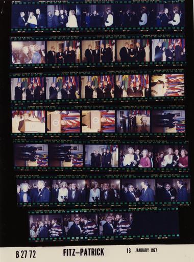 Keywords: Ford B2772 NLGRF photo contact sheet (1977-01-13)(Gerald Ford Library).jpg White House Photographic Office WHPO is housed at the Gerald R Ford Presidential Library a branch of the National Archives and Records Administration NARA <br/><br/> This file is a 200 dpi photo contact sheet having images from roll of film B2772 of the August 9 1974 - January 20 1977 Gerald R Ford White House Photographic Office Series A0001-A9999 and B0001-B2886 photographs <br/><br/> The date on the photo contact sheet is the date the roll of film was processed not necessarily the date the photographs were taken See table below for additional details 1977-01-13 Gerald R Ford Presidential Library Image http //www fordlibrarymuseum gov/library/whphotos/B2772_NLGRF jpg B2772_NLGRF jpg from http //www fordlibrarymuseum gov/library/whphotos/19770113whpo pdf White House Photographs January 13 1977 of the http //www fordlibrarymuseum gov/Library/whphotos/whpo asp White House Photographic Collection page White House Photographic Office WHPO - Fitz-Patrick PD-USGov Institution Institution Gerald R Ford Presidential Library Table wikitable sortable + Photo contact sheet B2772 U S President Ford Administration Gerald R Ford Library Frame s Tone Subject proper Subject generic Names Geographic Location Photographer Date - 3-4 Color Arrival at Pan American Union Prior to Presentation of the Medal of Freedom to Secretary of State Henry A Kissinger greeting handshaking talking; all not in both frames; formal wear; BF wearing white stole GRF Betty Ford Manuel Ramirez Amb Alejandro Orfila Others Washington DC Pan American Union - Outside Fitz-Patrick 1977-01-13 - 5-7 Color Arrival at Pan American Union Prior to Presentation of the Medal of Freedom to Secretary of State Henry A Kissinger greeting handshaking talking; all not in every frame; formal wear GRF Sec Mrs Kissinger Others Washington DC Pan American Union - Outside Fitz-Patrick 1977-01-13 - 8 Color Reception Prior to Presentation of the Medal of Freedom to Secretary of State Henry A Kissinger standing talking; close up; formal wear Betty Ford Two Unidentified women Washington DC Hall of the Americas - Pan American Union Fitz-Patrick 1977-01-13 - 9-10 Color Reception Prior to Presentation of the Medal of Freedom to Secretary of State Henry A Kissinger standing talking; formal wear GRF Rockefeller Kissinger Amb Alejandro Orfila Washington DC Hall of the Americas - Pan American Union Fitz-Patrick 1977-01-13 - 11 Color Reception Prior to Presentation of the Medal of Freedom to Secretary of State Henry A Kissinger standing talking; formal wear GRF Rockefeller Kissinger Washington DC Hall of the Americas - Pan American Union Fitz-Patrick 1977-01-13 - 12-16 Color Presentation of the Medal of Freedom to Secretary of State Henry A Kissinger GRF putting medal around HAK's neck handshaking; Rockefeller applauding; formal wear GRF Rockefeller Kissinger Washington DC Hall of the Americas - Pan American Union Fitz-Patrick 1977-01-13 - 17-20 Color Presentation of the Medal of Freedom to Secretary of State Henry A Kissinger standing at lectern speaking; wearing medal; formal wear Kissinger Washington DC Hall of the Americas - Pan American Union Fitz-Patrick 1977-01-13 - 21 Color Presentation of the Medal of Freedom to Secretary of State Henry A Kissinger HAK walking from lectern others applauding; formal wear GRF Rockefeller Kissinger Amb Alejandro Orfila Washington DC Hall of the Americas - Pan American Union Fitz-Patrick 1977-01-13 - 22-25 Color Presentation of the Medal of Freedom to Secretary of State Henry A Kissinger standing posing talking; formal wear GRF Rockefeller Kissinger Amb Alejandro Orfila Washington DC Hall of the Americas - Pan American Union Fitz-Patrick 1977-01-13 - 26-27 Color Presentation of the Medal of Freedom to Secretary of State Henry A Kissinger standing talking; formal wear Nancy Kissinger Happy Rockefeller Unidentified Man Washington DC Hall of the Americas - Pan American Union Fitz-Patrick 1977-01-13 - 28 Color Presentation of the Medal of Freedom to Secretary of State Henry A Kissinger standing talking; formal wear GRF Unidentified Woman Washington DC Hall of the Americas - Pan American Union Fitz-Patrick 1977-01-13 - 29-30 Color Presentation of the Medal of Freedom to Secretary of State Henry A Kissinger standing posing; HAK wearing medal; formal wear Sec Mrs Kissinger Washington DC Hall of the Americas - Pan American Union Fitz-Patrick 1977-01-13 - 31-32 Color Presentation of the Medal of Freedom to Secretary of State Henry A Kissinger standing talking handshaking; HAK in formal wear Kissinger Unidentified Man Washington DC Hall of the Americas - Pan American Union Fitz-Patrick 1977-01-13 - 33-35 Color Presentation of the Medal of Freedom to Secretary of State Henry A Kissinger; United Press International UPI Photographer standing talking handshaking; HAK in formal wear; photographer in horizontal striped sweater wearing cameras around neck Kissinger Ron Bennett Washington DC Hall of the Americas - Pan American Union Fitz-Patrick 1977-01-13 Gerald R Ford Presidential Library and Museum-cooperation PD-USGov Contact sheets by the Ford White House January 1977 |
