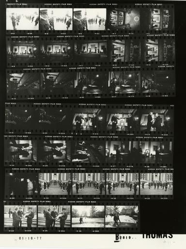 | Keywords: Ford B2819 NLGRF photo contact sheet (1977-01-18)(Gerald Ford Library).jpg White House Photographic Office WHPO is housed at the Gerald R Ford Presidential Library a branch of the National Archives and Records Administration NARA <br/><br/> This file is a 200 dpi photo contact sheet having images from roll of film B2819 of the August 9 1974 - January 20 1977 Gerald R Ford White House Photographic Office Series A0001-A9999 and B0001-B2886 photographs <br/><br/> The date on the photo contact sheet is the date the roll of film was processed not necessarily the date the photographs were taken See table below for additional details 1977-01-18 Gerald R Ford Presidential Library Image http //www fordlibrarymuseum gov/library/whphotos/B2819_NLGRF jpg B2819_NLGRF jpg from http //www fordlibrarymuseum gov/library/whphotos/19770118whpo pdf White House Photographs January 18 1977 of the http //www fordlibrarymuseum gov/Library/whphotos/whpo asp White House Photographic Collection page White House Photographic Office WHPO - Thomas PD-USGov Institution Institution Gerald R Ford Presidential Library Table wikitable sortable + Photo contact sheet B2819 U S President Ford Administration Gerald R Ford Library Frame s Tone Subject proper Subject generic Names Geographic Location Photographer Date - 4-6 BW Dedication of National Defense University at the National War College; Arrival - Fort McNair Arlington Virginia GRF and Bayne walking between honor guard; approaching camera GRF Vice Adm Marmaduke G Bayne USN; Multi-Service Honor Guard Fort McNair Arlington VA National War College Thomas 1977-01-18 - 7-20 BW Dedication of National Defense University at the National War College; Remarks - Fort McNair Arlington Virginia GRF at lectern; Bayne standing behind; audience seated; various angles and distances; all not in every frame GRF Vice Adm Marmaduke G Bayne USN audience Fort McNair Arlington VA National War College Thomas 1977-01-18 - 21-26 BW Dedication of National Defense University at the National War College - Fort McNair Arlington Virginia standing near easel; GRF removing cover over seal for National Defense University; GRF and Bayne handshaking talking in some frame GRF Vice Adm Marmaduke G Bayne USN Fort McNair Arlington VA National War College Thomas 1977-01-18 - 27-28 BW Dedication of National Defense University at the National War College - Fort McNair Arlington Virginia standing signing guest book GRF Fort McNair Arlington VA National War College Thomas 1977-01-18 - 29 BW Dedication of National Defense University at the National War College; Chairman Joint Chiefs of Staff - Fort McNair Arlington Virginia GRF and Brown greeting handshaking; others in shadows GRF Gen Brown Others Fort McNair Arlington VA National War College Thomas 1977-01-18 - 30-33 BW Dedication of National Defense University at the National War College - Fort McNair Arlington Virginia GRF and Bayne walking between honor guard; approaching camera; war college in background GRF Vice Adm Marmaduke G Bayne USN; Multi-Service Honor Guard Fort McNair Arlington VA National War College Thomas 1977-01-18 - 34-35 BW Dedication of National Defense University at the National War College - Fort McNair Arlington Virginia Captain holding framed document; GRF at Bayne standing talking looking at document GRF Vice Adm Marmaduke G Bayne USN; Unidentified Army Captain Fort McNair Arlington VA National War College Thomas 1977-01-18 - 36-37 BW Dedication of National Defense University at the National War College - Fort McNair Arlington Virginia walking along sidewalk talking; snow on ground; setting sun in background GRF Vice Adm Marmaduke G Bayne USN Fort McNair Arlington VA National War College Thomas 1977-01-18 Gerald R Ford Presidential Library and Museum-cooperation PD-USGov Contact sheets by the Ford White House January 1977 |