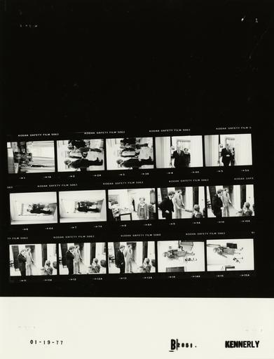 Keywords: Ford B2851 NLGRF photo contact sheet (1977-01-19)(Gerald Ford Library).jpg White House Photographic Office WHPO is housed at the Gerald R Ford Presidential Library a branch of the National Archives and Records Administration NARA <br/><br/> This file is a 200 dpi photo contact sheet having images from roll of film B2851 of the August 9 1974 - January 20 1977 Gerald R Ford White House Photographic Office Series A0001-A9999 and B0001-B2886 photographs <br/><br/> The date on the photo contact sheet is the date the roll of film was processed not necessarily the date the photographs were taken See table below for additional details 1977-01-19 Gerald R Ford Presidential Library Image http //www fordlibrarymuseum gov/library/whphotos/B2851_NLGRF jpg B2851_NLGRF jpg from http //www fordlibrarymuseum gov/library/whphotos/19770119whpo pdf White House Photographs January 19 1977 of the http //www fordlibrarymuseum gov/Library/whphotos/whpo asp White House Photographic Collection page White House Photographic Office WHPO <br/> Creator David Hume Kennerly PD-USGov Institution Institution Gerald R Ford Presidential Library Table wikitable sortable + Photo contact sheet B2851 U S President Ford Administration Gerald R Ford Library Frame s Tone Subject proper Subject generic Names Geographic Location Photographer Date - 1 BW Following Medal of Freedom Presentation To Secretary of Defense Rumsfeld seated in President's chair Nicholas Rumsfeld Oval Office Kennerly 1977-01-19 - 2-3 BW Following Medal of Freedom Presentation To Secretary of Defense Rumsfeld GRF and N Rumsfeld standing talking in foreground; others in background talking GRF Nicholas Rumsfeld; Others Oval Office Kennerly 1977-01-19 - 4-7 BW Following Medal of Freedom Presentation To Secretary of Defense Rumsfeld standing talking in doorway between Scheduling and Advance Office and Oval Office; kissing in 2nd frame GRF Betty Ford Oval Office Kennerly 1977-01-19 - 8 BW BF in foreground smiling walking toward camera; GRF in background standing in doorway to Oval Office talking to unseen person Betty Ford GRF Scheduling and Advance Office Kennerly 1977-01-19 - 9-13 BW talking handshaking; BF seated others standing Betty Ford Two Unidentified Men Scheduling and Advance Office Kennerly 1977-01-19 - 14-15 BW Preparations for Moving out of White House on January 20 1977 - Transition from White House walking playing with carnival toy walking bird Betty Ford Second Floor - President and Mrs Ford's Bedroom Kennerly 1977-01-19 Gerald R Ford Presidential Library and Museum-cooperation PD-USGov Contact sheets by the Ford White House January 1977 Photographs by David Hume Kennerly from 1977 |