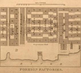 | Keywords: Foreign factories, 1840.jpg Map of the Thirteen Factories of Guangzhou in the Qing Empire in 1840 prior to their destruction by fire the next year during the First Opium War <br><br> Imperial refers to the Austrian Empire 1840 http //ocw mit edu/ans7870/21f/21f 027/rise_fall_canton_03/canton html MIT Published by Ja<sup><small><small>s</small></small></sup> Wyld Geographer to the Queen Charing Cross East London Enterered at Stationer's Hall <gallery> File British map of Canton 1840 jpg Full image File Plan of Canton Factories jpg Factories 1856 </gallery> PD-old ImageNote 1 1307 1185 727 67 3362 1366 2 FOREIGN FACTORIES ImageNoteEnd 1 ImageNote 2 1009 1063 1315 97 3362 1366 2 Pearl River ImageNoteEnd 2 ImageNote 3 996 185 97 630 3362 1366 2 Danish I-VI ImageNoteEnd 3 ImageNote 4 1706 185 97 593 3362 1366 2 Swedish I-IV ImageNoteEnd 4 ImageNote 5 1799 185 84 593 3362 1366 2 Old English I-VI ImageNoteEnd 5 ImageNote 6 1967 185 172 609 3362 1366 2 British I-VI ImageNoteEnd 6 ImageNote 7 2131 185 113 614 3362 1366 2 Dutch I-VI ImageNoteEnd 7 ImageNote 8 1446 185 76 588 3362 1366 2 American I-IV ImageNoteEnd 8 ImageNote 9 1231 181 80 647 3362 1366 2 French I-VIII ImageNoteEnd 9 ImageNote 10 1164 181 71 647 3362 1366 2 Spanish I-IV ImageNoteEnd 10 ImageNote 11 290 92 441 67 3362 1366 2 REFERENCES ImageNoteEnd 11 ImageNote 12 2610 92 433 88 3362 1366 2 REFERENCES ImageNoteEnd 12 ImageNote 13 1100 1452 519 77 2694 2434 2 Respondentia Walk ImageNoteEnd 13 ImageNote 14 2000 1700 219 69 2694 2434 2 Garden ImageNoteEnd 14 ImageNote 15 491 1610 130 126 2694 2434 2 Flag<br>Staff ImageNoteEnd 15 ImageNote 16 820 252 45 1103 2694 2434 2 Old China Street ImageNoteEnd 16 ImageNote 17 771 252 61 1103 2694 2434 2 Chinese Shops ImageNoteEnd 17 ImageNote 18 292 252 45 1282 2694 2434 2 Chinese Shops ImageNoteEnd 18 ImageNote 19 247 256 57 1278 2694 2434 2 New China Street ImageNoteEnd 19 ImageNote 20 2483 260 207 1217 2694 2434 2 Creek I-IV or VI ImageNoteEnd 20 ImageNote 21 2280 260 207 1209 2694 2434 2 Dutch I-VI ImageNoteEnd 21 ImageNote 22 1939 264 341 1205 2694 2434 2 British I-VI ImageNoteEnd 22 ImageNote 23 864 252 49 1107 2694 2434 2 Chinese Shops ImageNoteEnd 23 ImageNote 24 203 252 45 1282 2694 2434 2 Chinese Shops ImageNoteEnd 24 ImageNote 25 4 239 215 1286 2694 2434 2 Danish I-VI ImageNoteEnd 25 ImageNote 26 341 256 122 1270 2694 2434 2 Spanish I-IV ImageNoteEnd 26 ImageNote 27 467 247 166 1282 2694 2434 2 French I-VIII ImageNoteEnd 27 ImageNote 28 909 256 138 1160 2694 2434 2 American I-IV ImageNoteEnd 28 ImageNote 29 1225 247 203 1172 2694 2434 2 Imperial I-VI <br>Austrian ImageNoteEnd 29 ImageNote 30 633 2057 1473 162 2694 2434 2 PEARL RIVER ImageNoteEnd 30 ImageNote 31 661 247 150 1225 2694 2434 2 A Hong Merchant's<br>Mingqua ImageNoteEnd 31 ImageNote 32 1043 260 195 1160 2694 2434 2 Paou shun I-VI ImageNoteEnd 32 ImageNote 33 1424 252 191 1172 2694 2434 2 Swedish I-IV ImageNoteEnd 33 ImageNote 34 1607 252 162 1176 2694 2434 2 Old English I-VI ImageNoteEnd 34 ImageNote 35 1242 1716 158 114 2694 2434 2 Hoppo<br> Superintendant of Customs ImageNoteEnd 35 ImageNote 36 2321 1460 114 187 2694 2434 2 Verandah ImageNoteEnd 36 ImageNote 37 2004 1460 215 211 2694 2434 2 Verandah ImageNoteEnd 37 ImageNote 38 2605 1497 73 162 2694 2434 2 Hoppo<br> Superintendant of Customs ImageNoteEnd 38 ImageNote 39 1911 256 32 1180 2694 2434 2 Hog Lane ImageNoteEnd 39 ImageNote 40 1878 759 37 150 2694 2434 2 Hospital ImageNoteEnd 40 ImageNote 41 1773 256 110 1172 2694 2434 2 Fung tae I-V ImageNoteEnd 41 ImageNote 42 1883 901 32 398 2694 2434 2 Chinese shops ImageNoteEnd 42 ImageNote 43 1878 256 32 499 2694 2434 2 Chinese shops ImageNoteEnd 43 ImageNote 44 1152 57 385 65 2694 2434 2 Scale of 200 Yards ImageNoteEnd 44 ImageNote 45 536 150 57 49 2694 2434 2 0 ImageNoteEnd 45 ImageNote 46 605 150 53 45 2694 2434 2 10 ImageNoteEnd 46 ImageNote 47 686 158 57 37 2694 2434 2 20 ImageNoteEnd 47 ImageNote 48 759 138 69 61 2694 2434 2 30 ImageNoteEnd 48 ImageNote 49 836 150 65 57 2694 2434 2 40 ImageNoteEnd 49 ImageNote 50 933 154 57 53 2694 2434 2 50 ImageNoteEnd 50 ImageNote 51 1315 150 77 49 2694 2434 2 100 ImageNoteEnd 51 ImageNote 52 2094 146 101 57 2694 2434 2 200 ImageNoteEnd 52 ImageNote 53 633 2251 1469 138 2694 2434 2 FOREIGN FACTORIES ImageNoteEnd 53 ImageNote 54 8 239 32 1302 2694 2434 2 Pwanting Street ImageNoteEnd 54 ImageNote 55 4 183 2686 77 2694 2434 2 Thirteen Factories Street ImageNoteEnd 55 ImageNote 56 1862 1919 126 114 2694 2434 2 Jackass Point ImageNoteEnd 56 ImageNote 57 2662 8 28 1550 2694 2434 2 the creek ImageNoteEnd 57 ImageNote 58 2158 1205 77 69 2694 2434 2 Clerk ImageNoteEnd 58 Thirteen Factories Old maps of Guangzhou 1840 in China Guangzhou in the 1840s Puankhequa James Wyld |