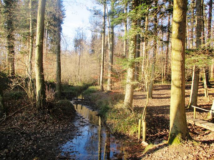 Keywords: forest bach water running fairy tale forest atmosphere wood mirroring earth tribe weather mood thurgau switzerland sommeri