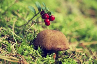 Keywords: forest chestnut boletus mushroom autumn brown chestnut boletus edible the collection of forest litter bilberry
