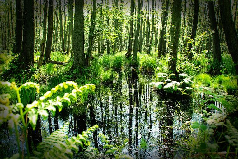 Keywords: forest darß spring trees pond mirroring grasses nature