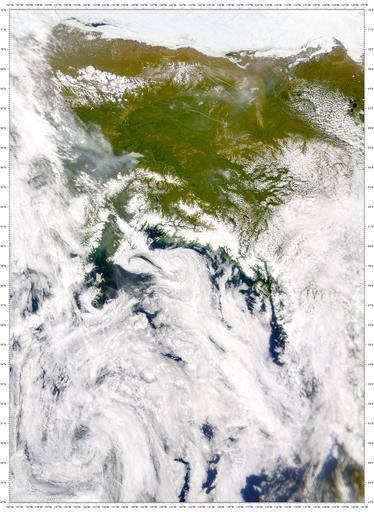Keywords: Forest Fires near Fairbanks, AK , Image of the Day DVIDS729052.jpg en Two large wildfires were burning south of Fairbanks Alaska on June 24 when this true-color image of the region was acquired by the Sea-viewing Wide Field-of-view Sensor SeaWiFS A combination of high temperatures and light winds were fanning the flames southwestward away from Fairbanks Together both fires consumed more than 80 000 acres The largest of the fires burned about 50 000 acres on Fort Wainwright military land sending a thick plume of smoke over the nearby town of Nenana South of Nenana more than 250 firefighters and 5 helicopters were dispatched to fight the other large fire which had consumed about 30 000 acres In addition to these blazes there were thirteen other smaller wildfires burning across the state on June 24 The smoke plumes of several of these fires are visible in this scene including the large fire burning near Fairbanks The snow-capped peaks of part of the Alaska Mountain Range is visible along the southern bottom portion of this image To the north we see a number of long thin airplane contrails casting shadows on the surface NASA Identifier S2001175223847 L1A_HUAF 2001 Glenn Research Center https //www dvidshub net/image/729052 729052 2012-10-17 15 25 WASHINGTON DC US PD-USGov Fort Wainwright Images from DoD uploaded by Fæ |