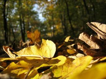 Keywords: forest floor golden october autumn sunny leaves emerge yellow fall color