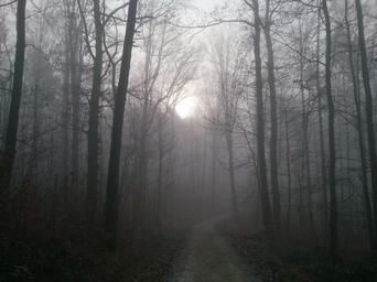 MAKE A MEME View Large Image forest fog autumn forest path colourless back light mood