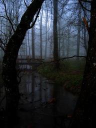 Keywords: forest fog tree glade bach bridge atmosphere weird backdrop black forest germany