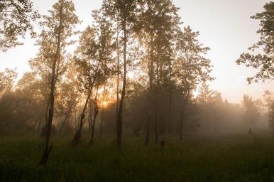 Keywords: forest fog trees humidity dawn morning sun nature landscape light silence