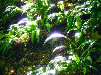 Keywords: forest leaves bright sun light shadow green