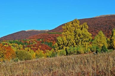 Keywords: forest mountains landscape nature panorama the prospect of sky view tree top view poland green autumn colors conifer pine branches meadow foliage plants