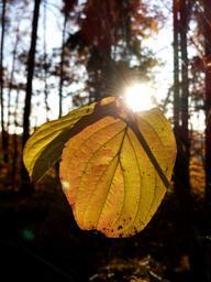Keywords: forest nature autumn flora leaf leaves glooming backlight sunlight beams shine outdoor woods vegetation countryside