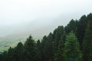 Keywords: forest nature fog scenic morning scenery evergreen pines