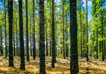 Keywords: forest sun tree green conifers log strains summer charred brand burns