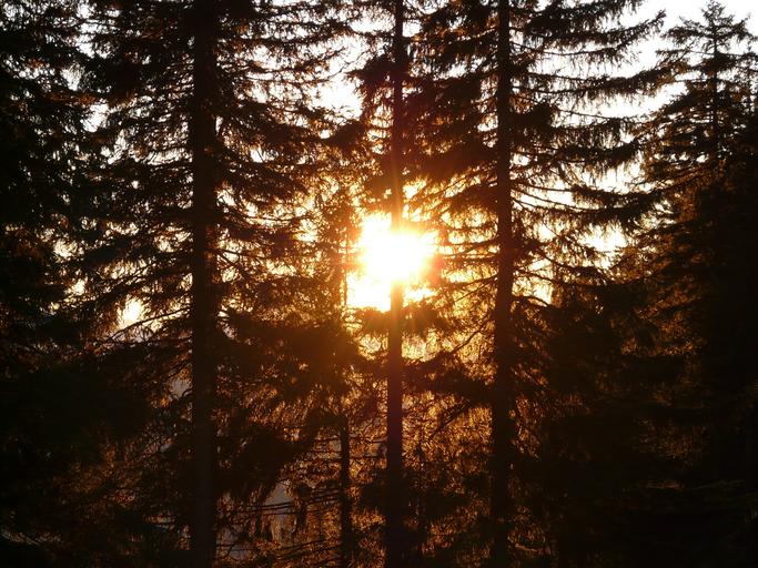 Keywords: forest tree sun back light tree trunks mood romance sunset atmospheric mysticism mystical magic log fir fir forest