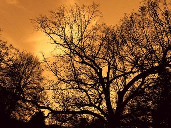 Keywords: forest trees evening branch branches autumn forest landscape nature crown silhouette brown shadow autumn treetop branches