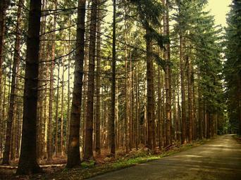 Keywords: forest trees firs fir forest coniferous forest conifers atmosphere road away